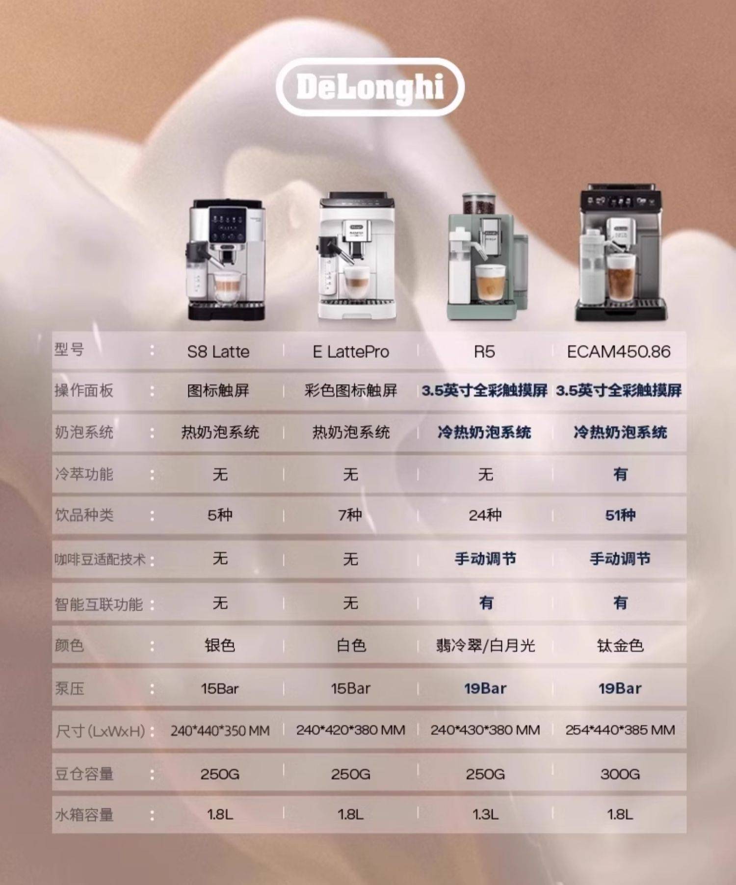 delonghi/德龙E LattePro咖啡机 进口全自动奶咖家用意式现磨