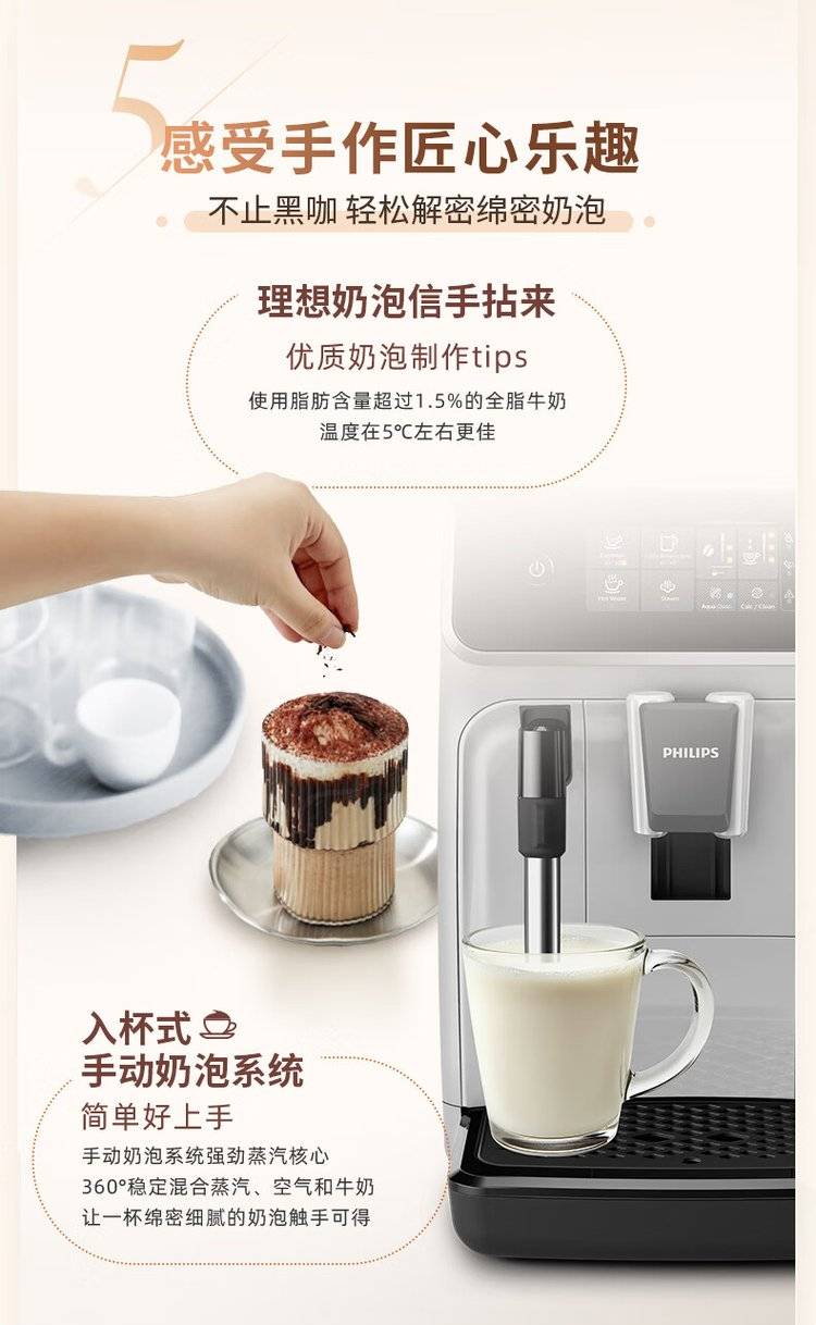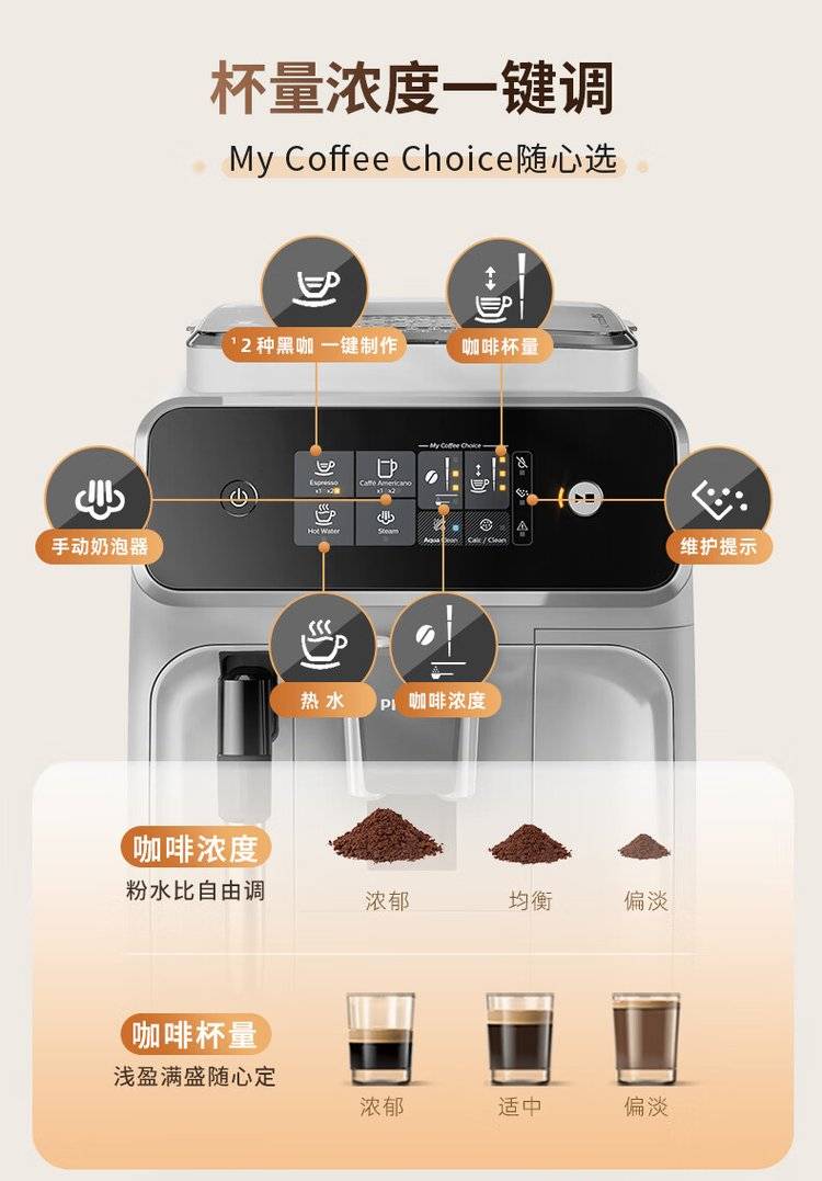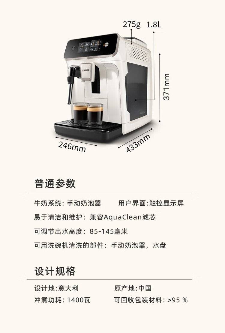 飞利浦新款全自动浓缩咖啡机EP1221/69/62 意式 美式 研磨一体咖啡 机