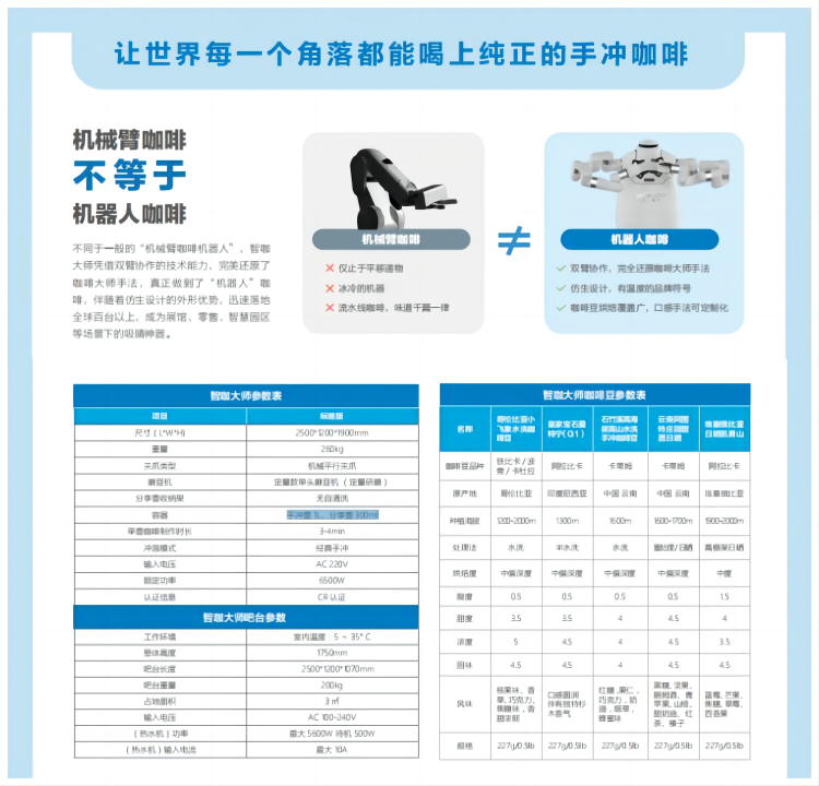 大白双臂机器人+咖啡桌+磨豆机+冲泡器具+其他配件