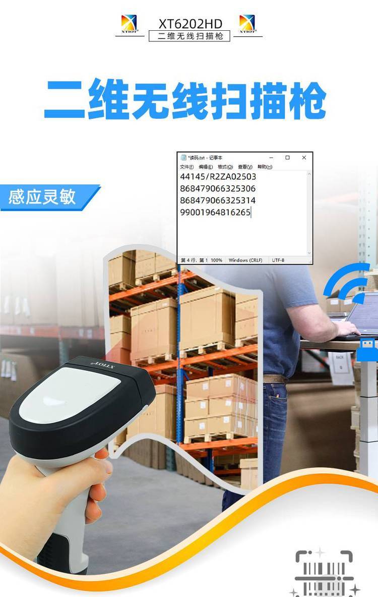 XTIOT XT6202HD批量条码扫描仪 无线扫码扫描枪 药品追溯码扫码枪