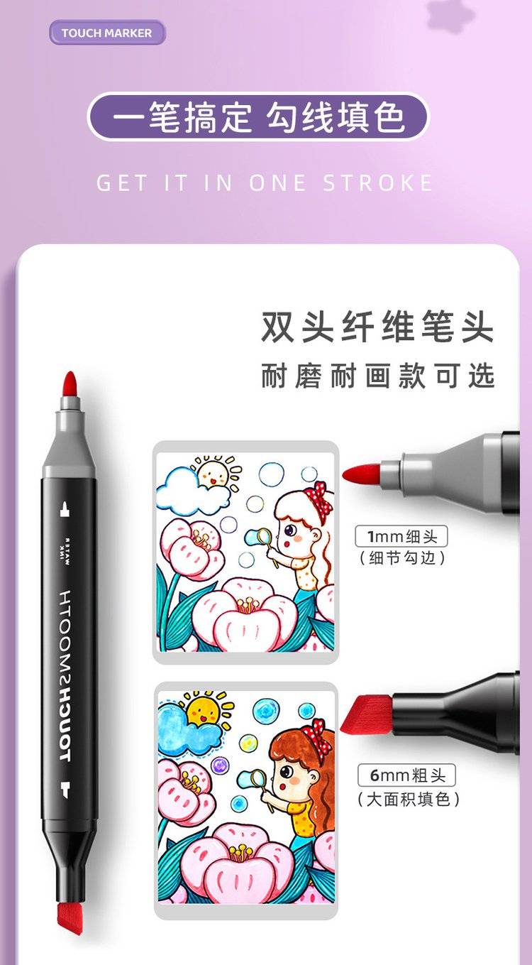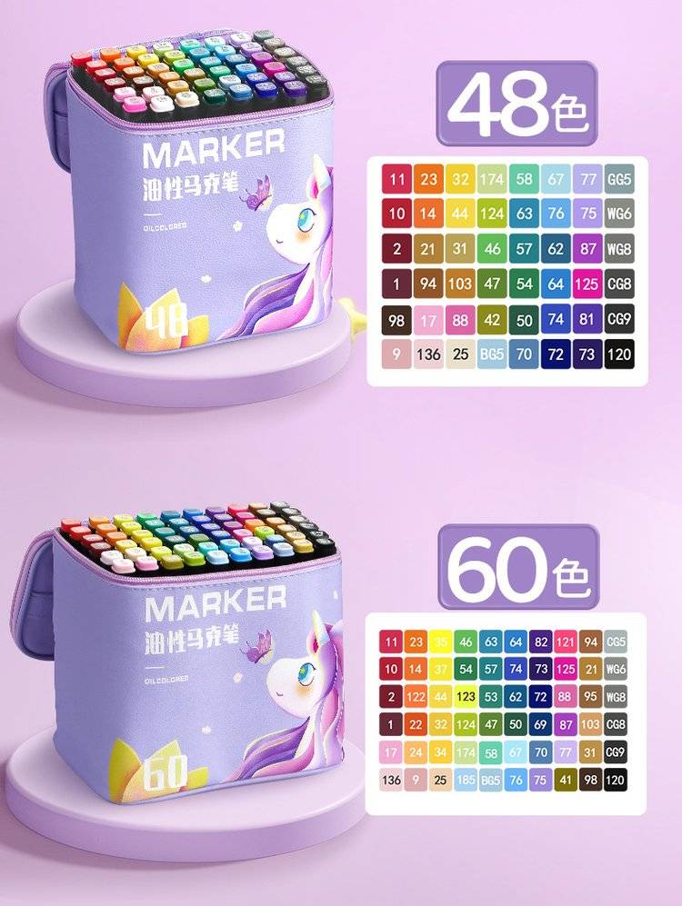 48色双头马克笔水彩笔绘画套装 白杆设计可水洗安全无毒