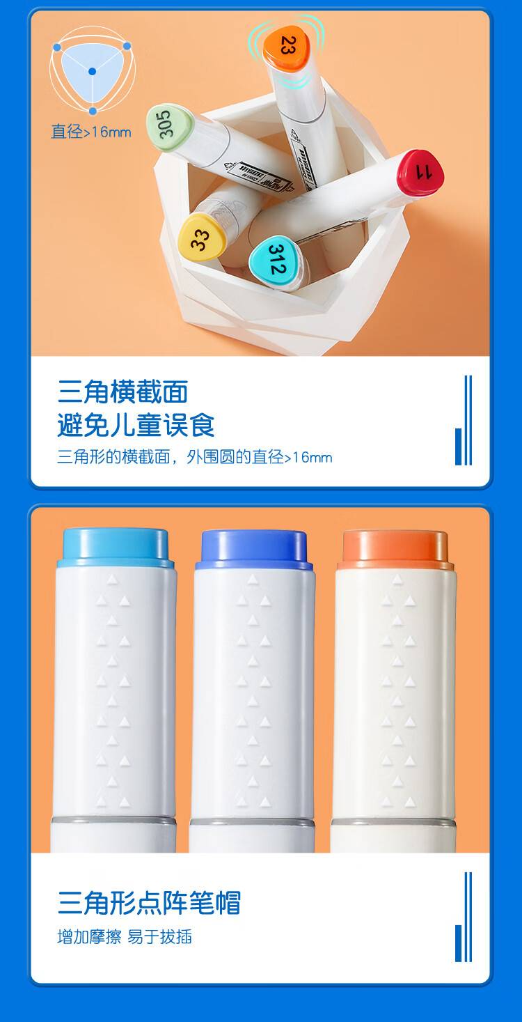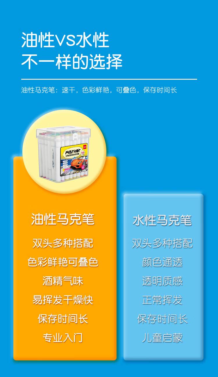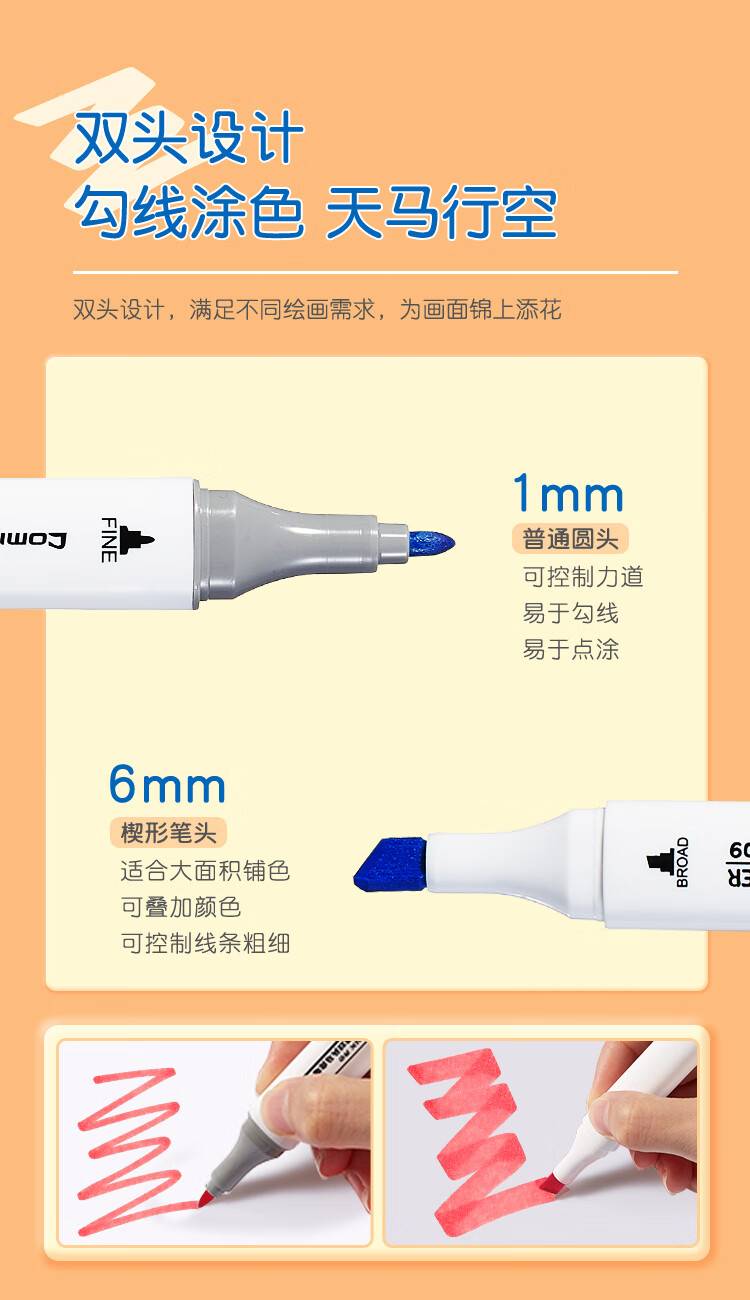 齐心(Comix)48色大三角杆双头速干油性马克笔/学生绘画水彩笔/纤