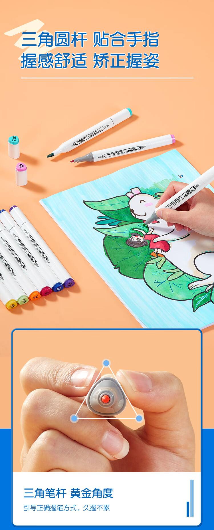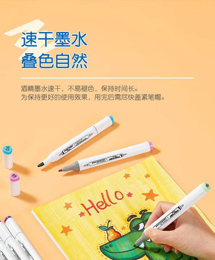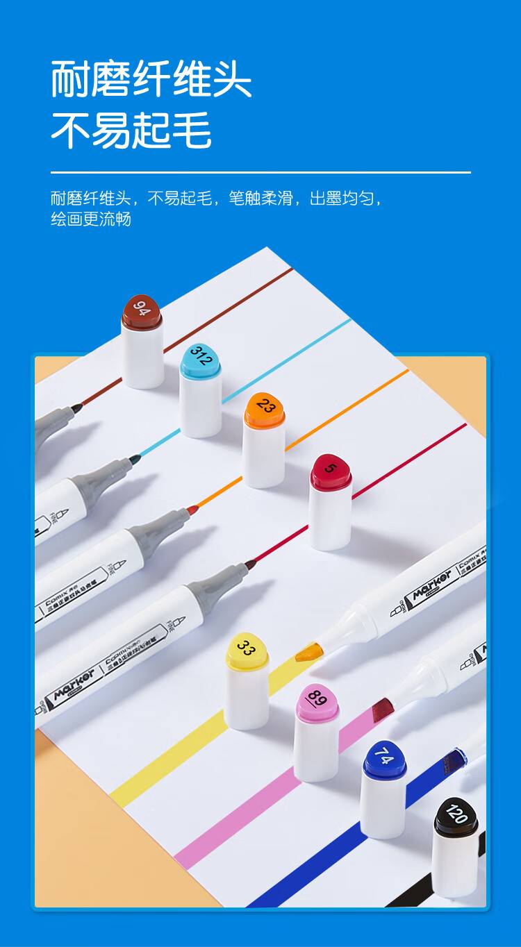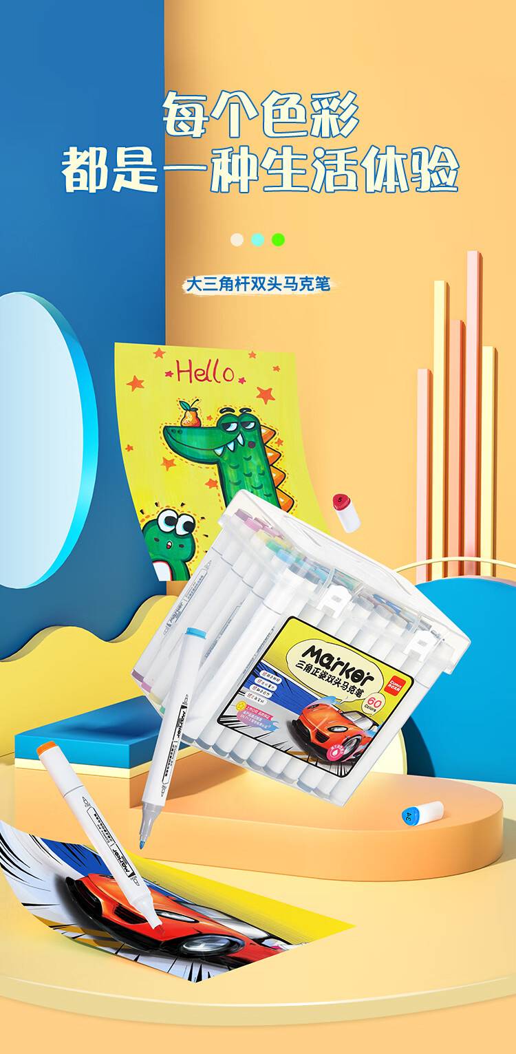 齐心(Comix)48色大三角杆双头速干油性马克笔/学生绘画水彩笔/纤