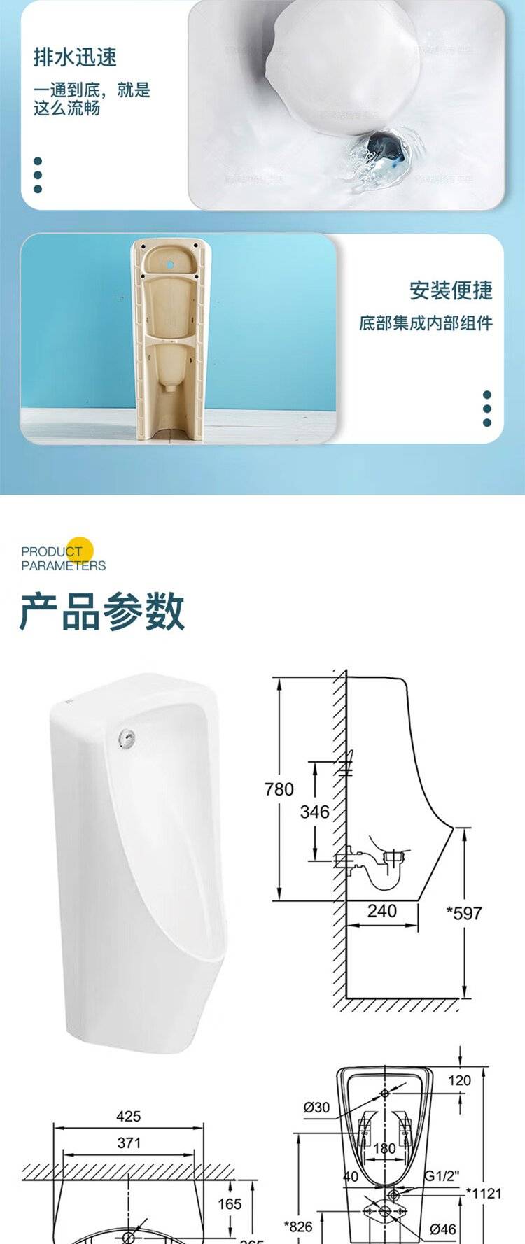 美标卫浴自动感应一体小便斗智能感应小便器男士壁挂挂墙式CP6519