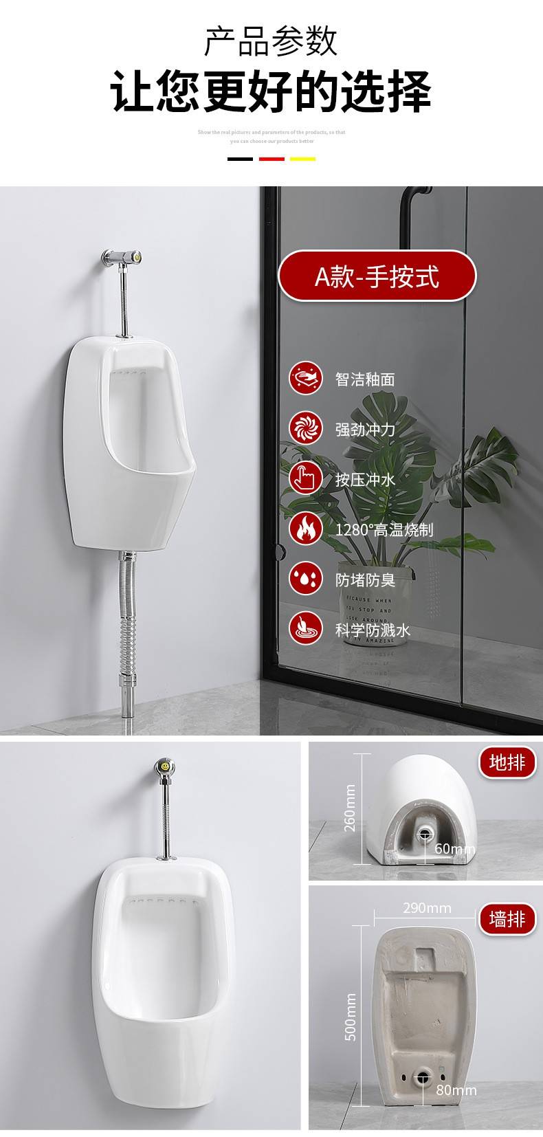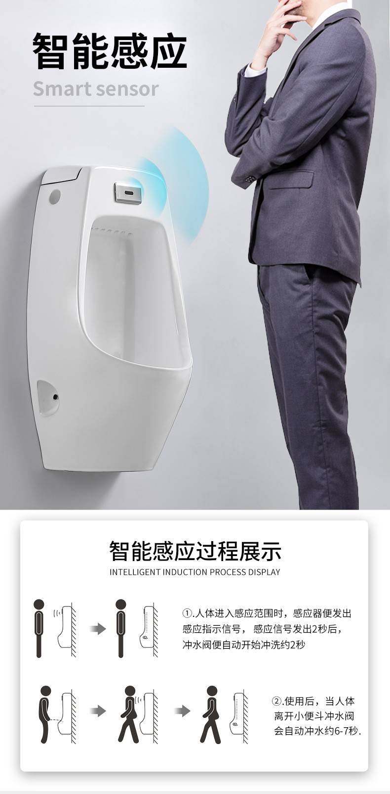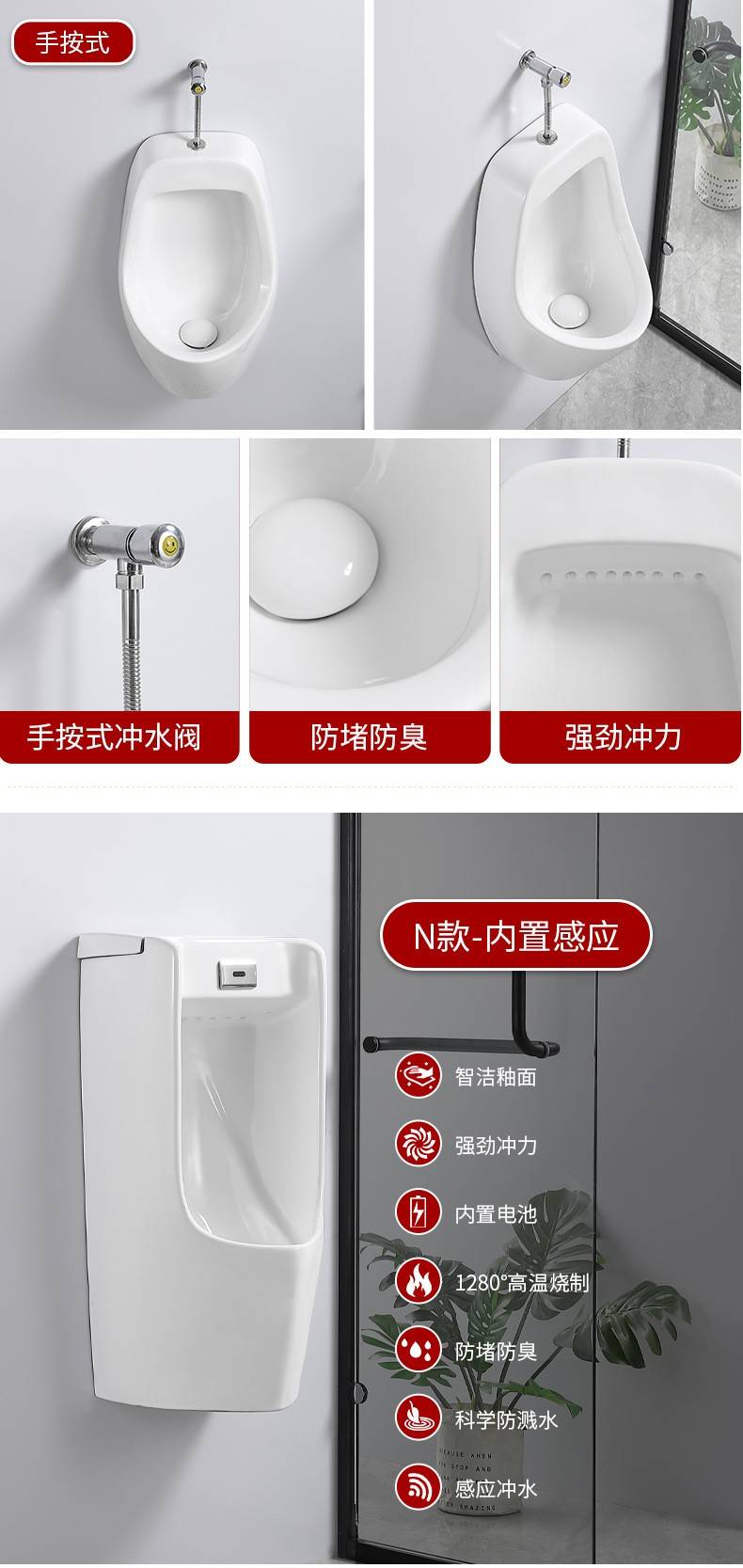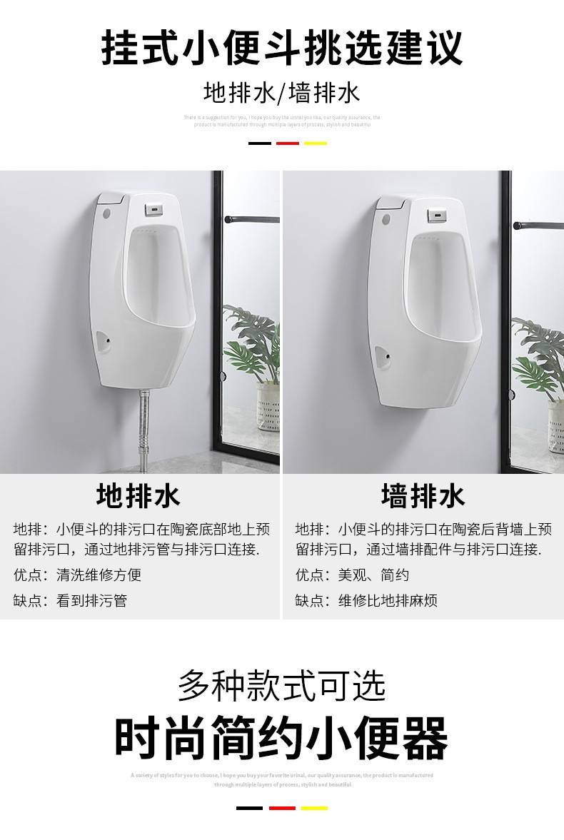 家用感应陶瓷小便器挂墙式落地式男士小便池成人小便斗尿便斗批发