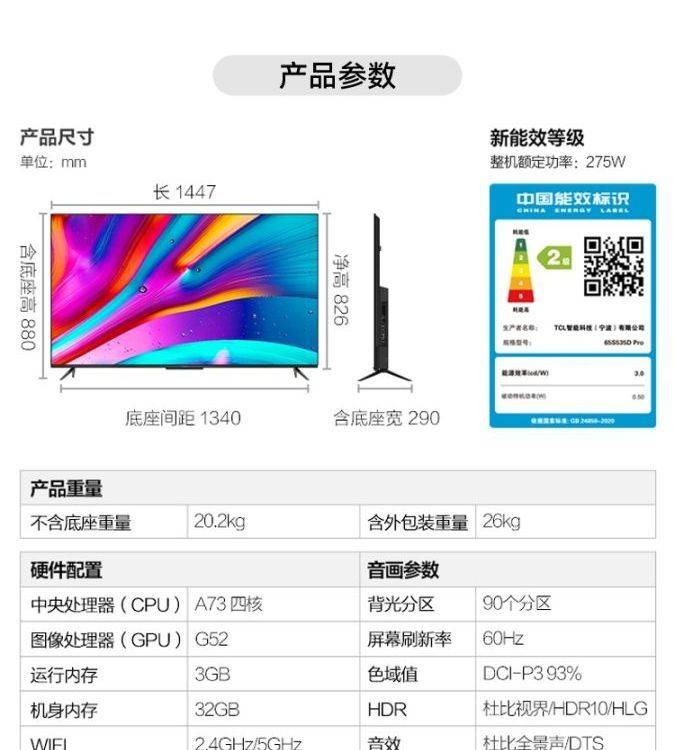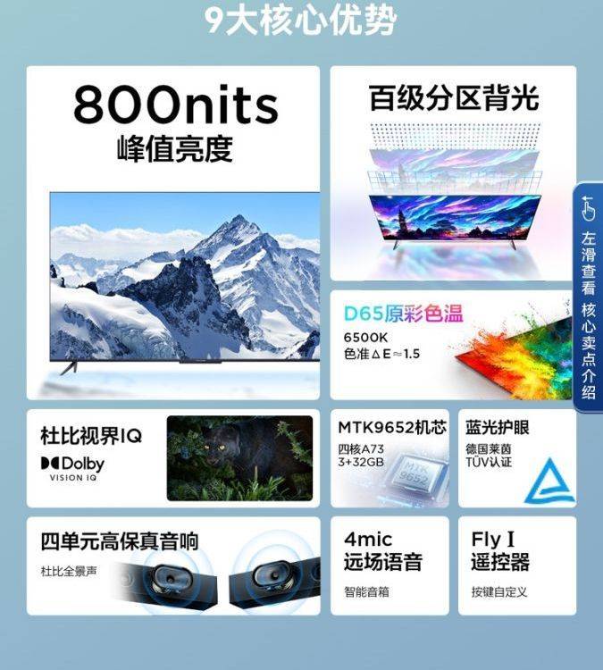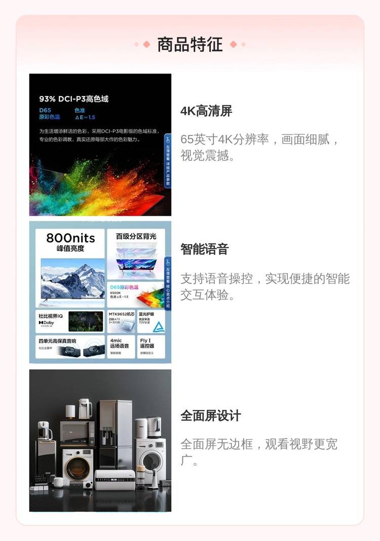 雷鸟 鹤6 65英寸4K高清智能网络语音智慧屏全面屏液晶电视机
