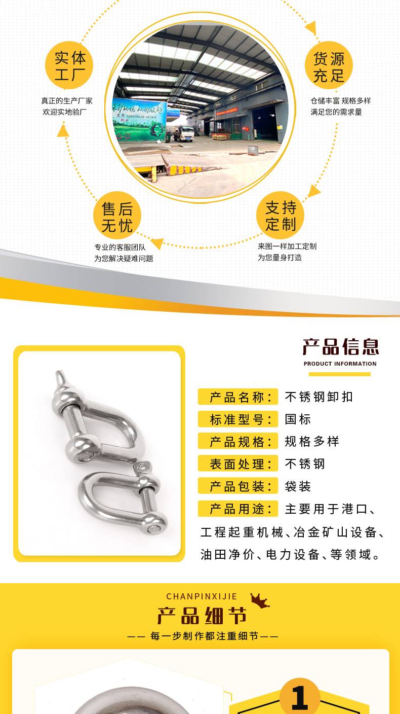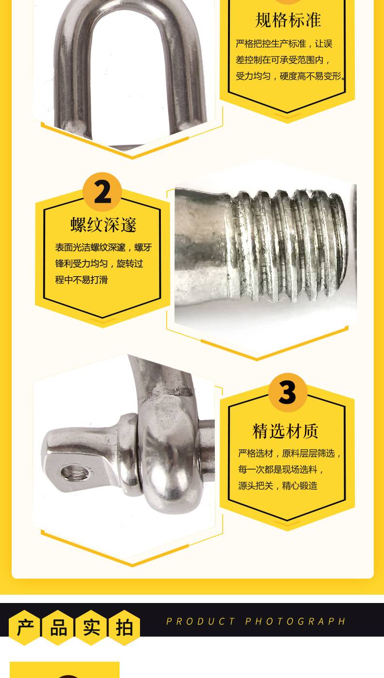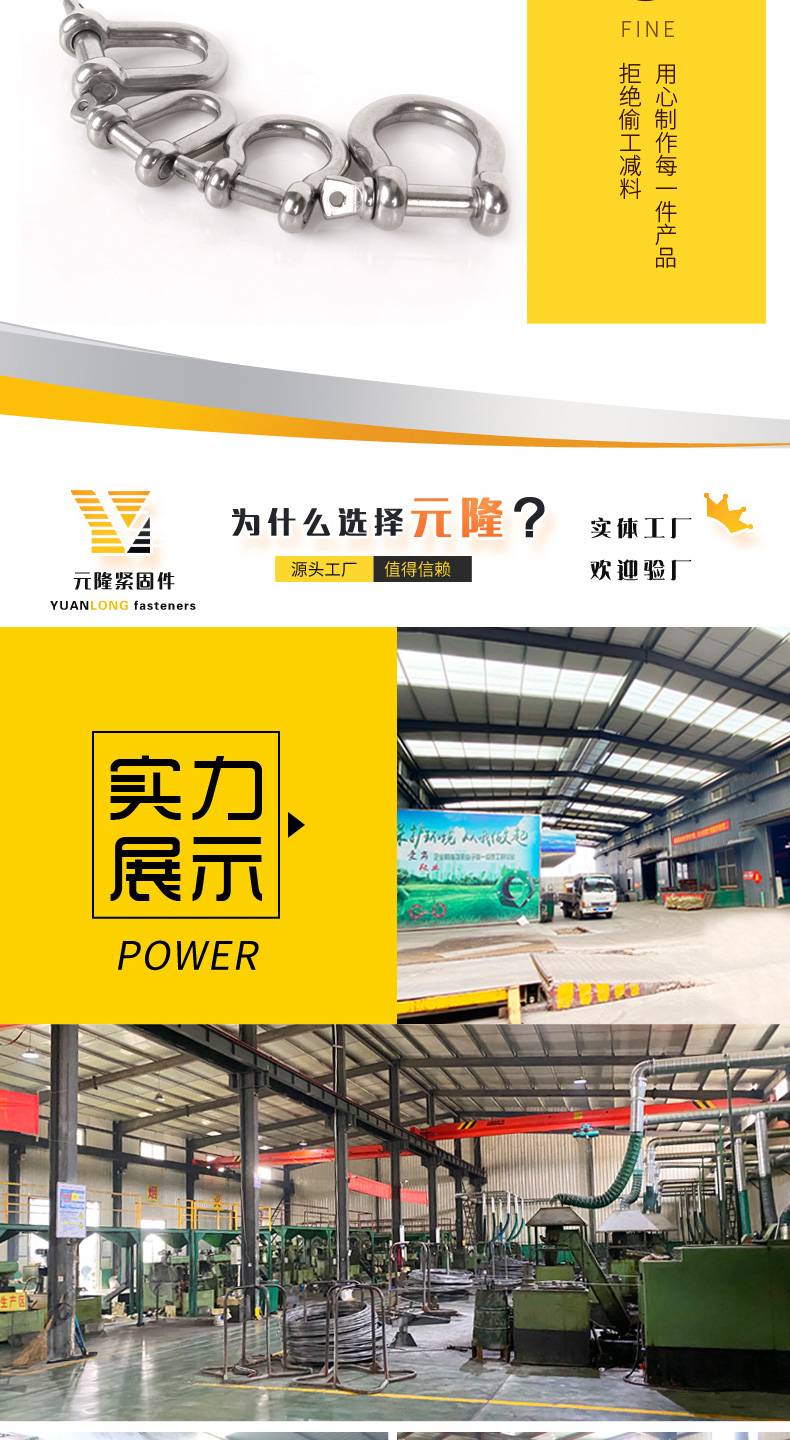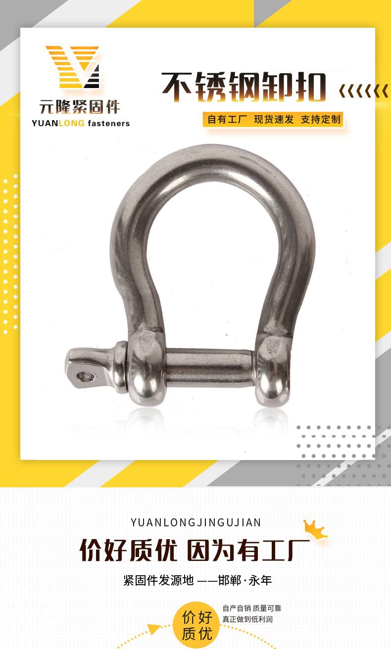 不锈钢卸扣 304美标弓形保险卸 扣高强度起重马蹄扣 元隆