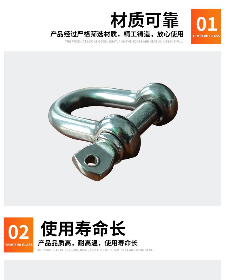 不锈钢D型卸扣 M4-M16 起重马蹄型弓形卡扣 船用吊装卡箍