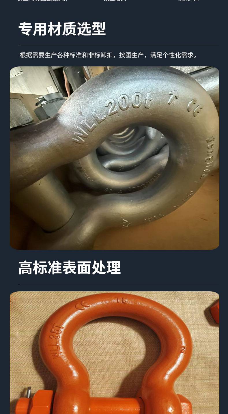 美标连接卸扣现货T8 55吨200吨400吨大吨位 起重机CCS元弘重工