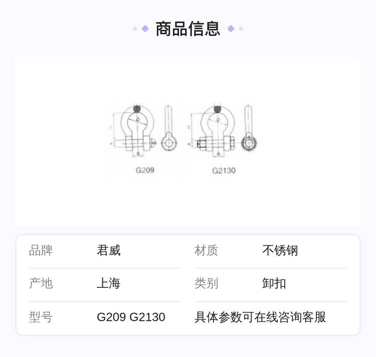 高强度美标弓型卸扣G209 G2130 发货快 品质保证