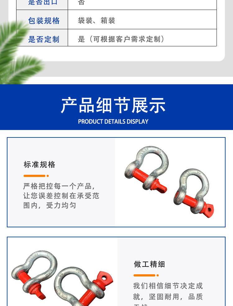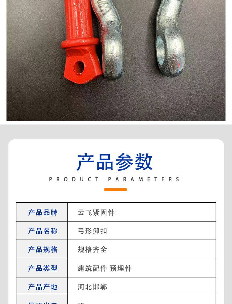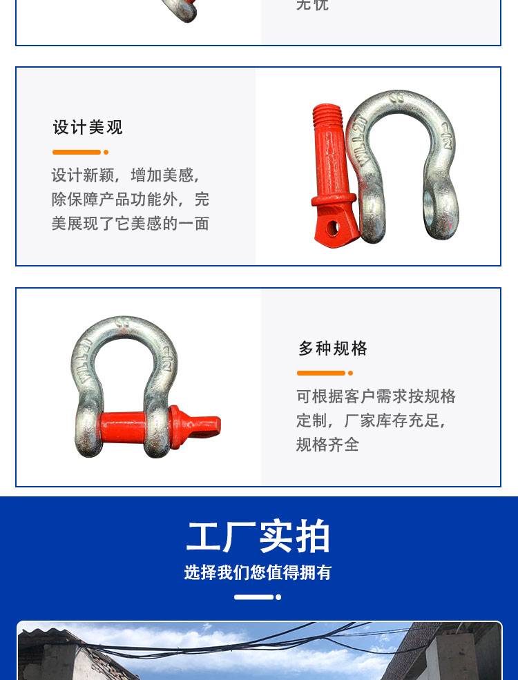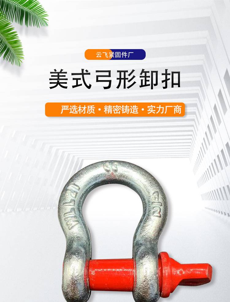 云飞 美式弓形卸扣 起重高强度船用d形u型马蹄扣吊钩马蹄形扣
