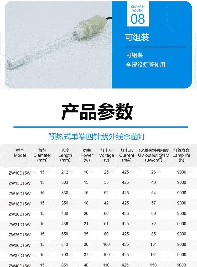 紫外线杀菌灯申星单端四针T5灯管石英UV消毒灯