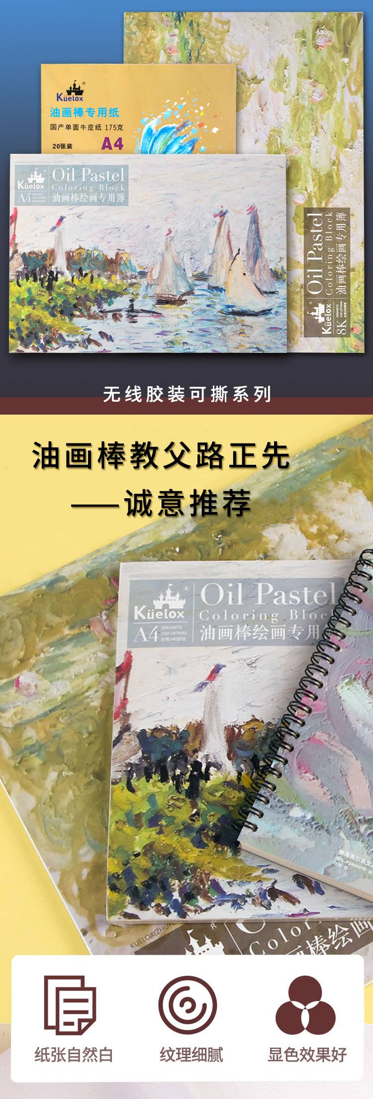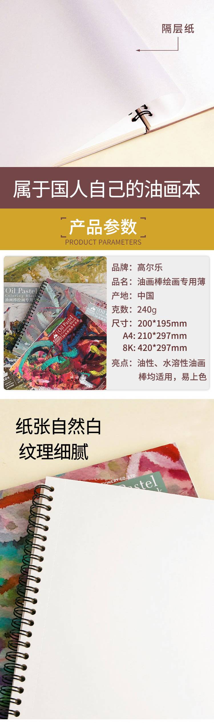 高尔乐油画棒专用本纸铁圈空白绘画本子20张防污彩铅速写本纸240g
