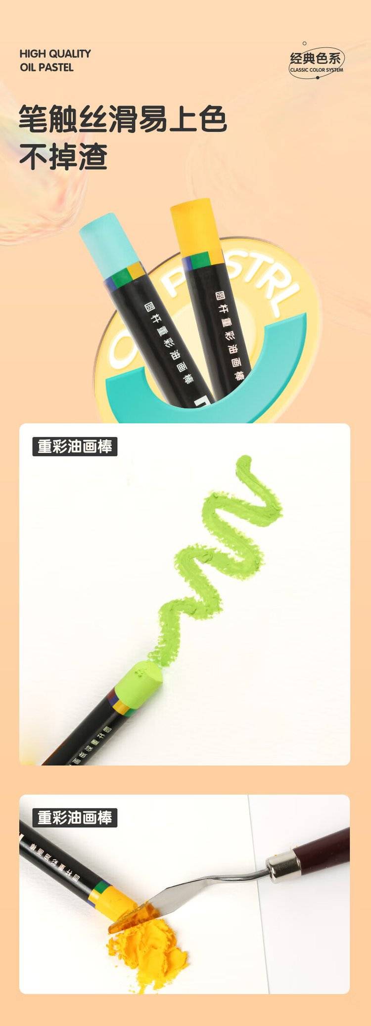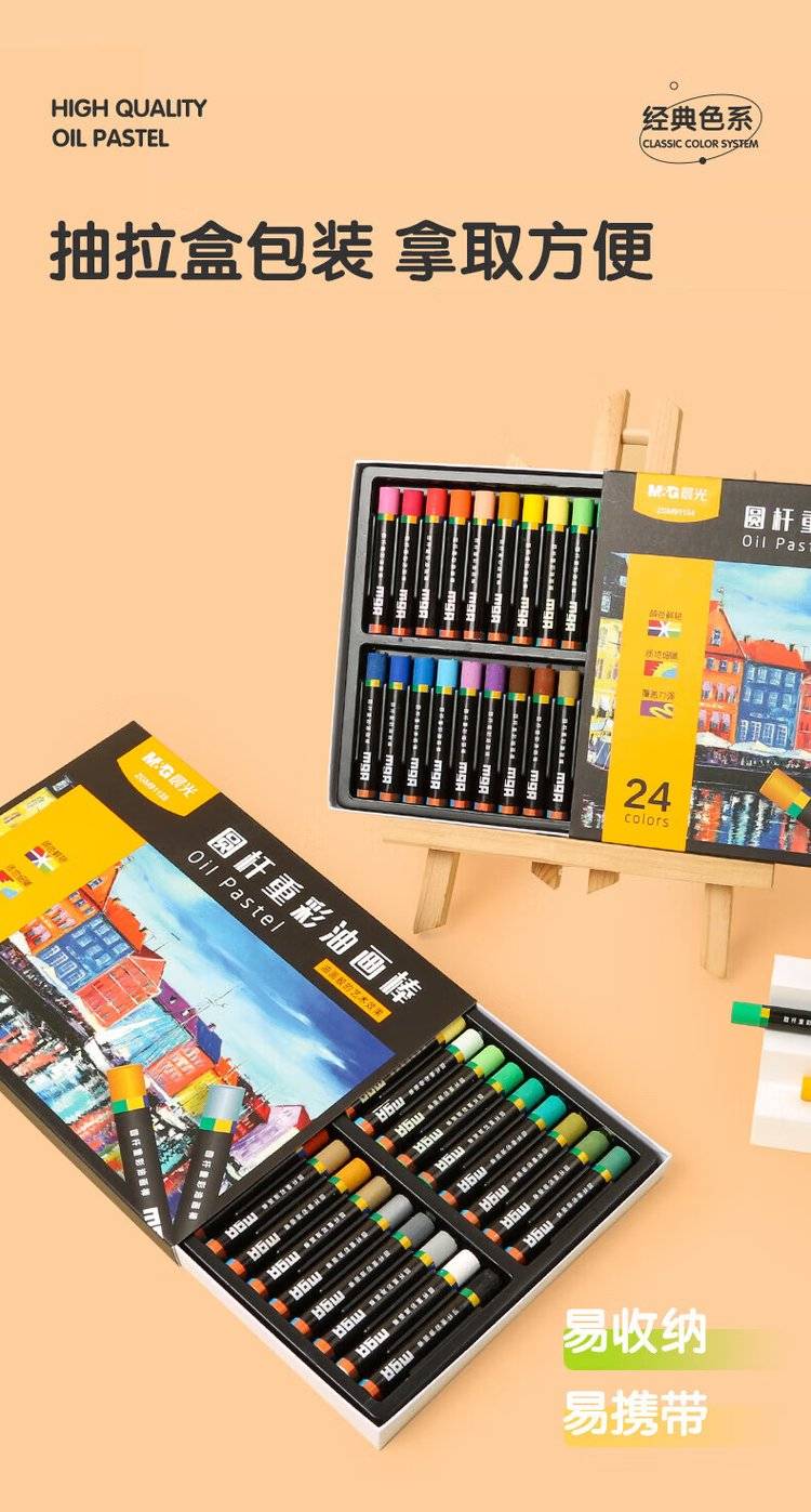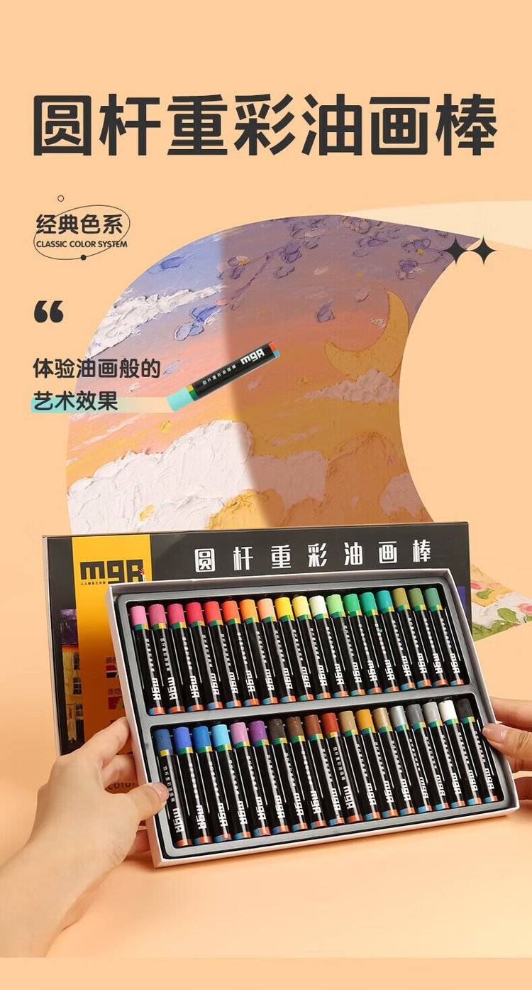 24色圆杆重彩油画棒专业美术油性色粉棒儿童画画初学者彩绘油彩棒