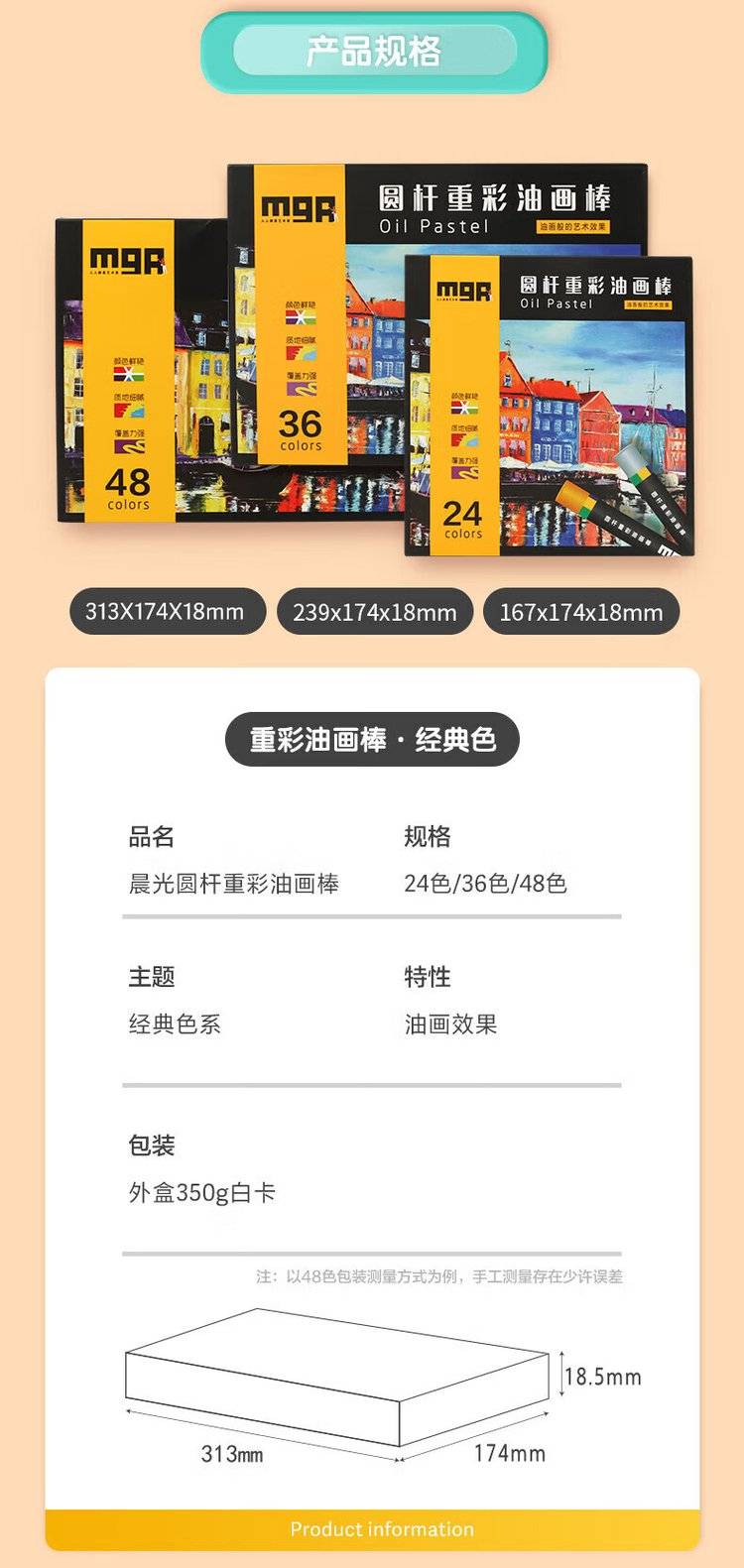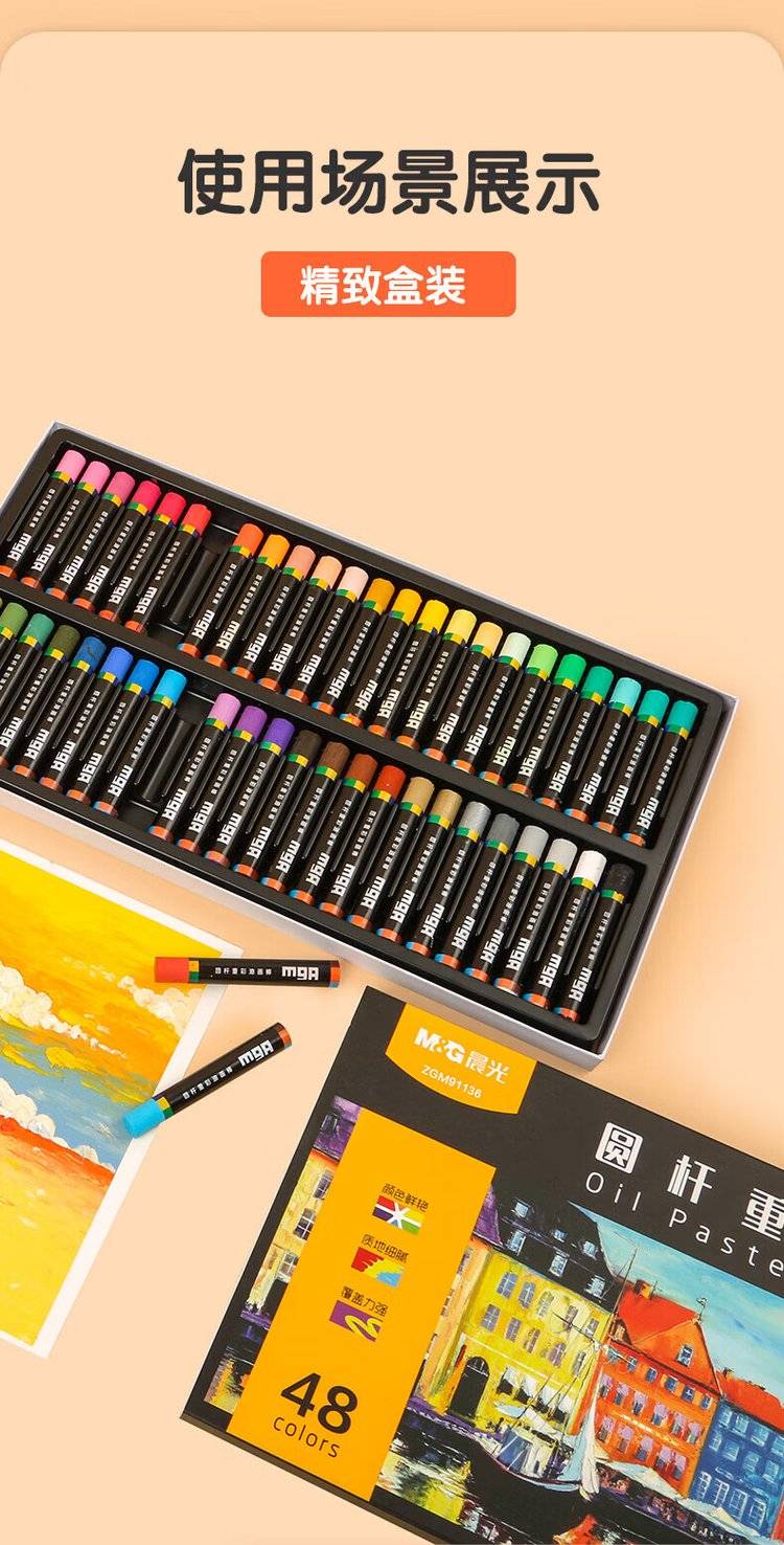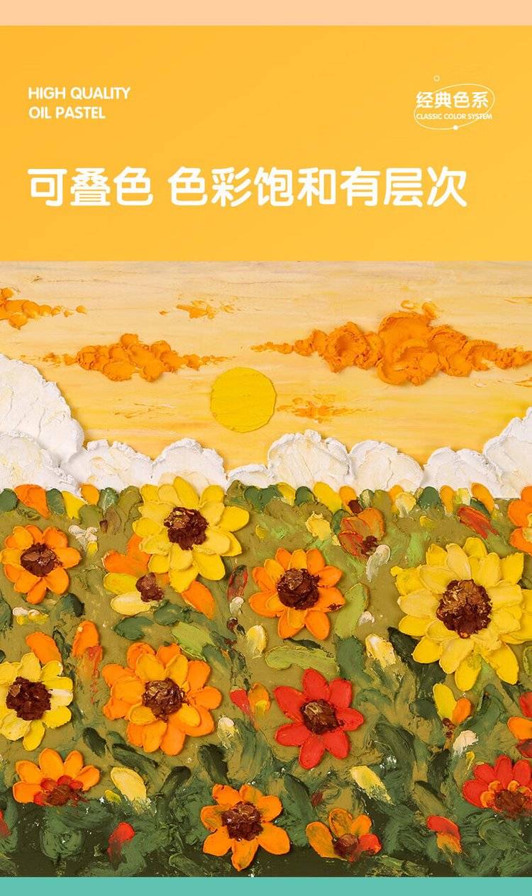 24色圆杆重彩油画棒专业美术油性色粉棒儿童画画初学者彩绘油彩棒