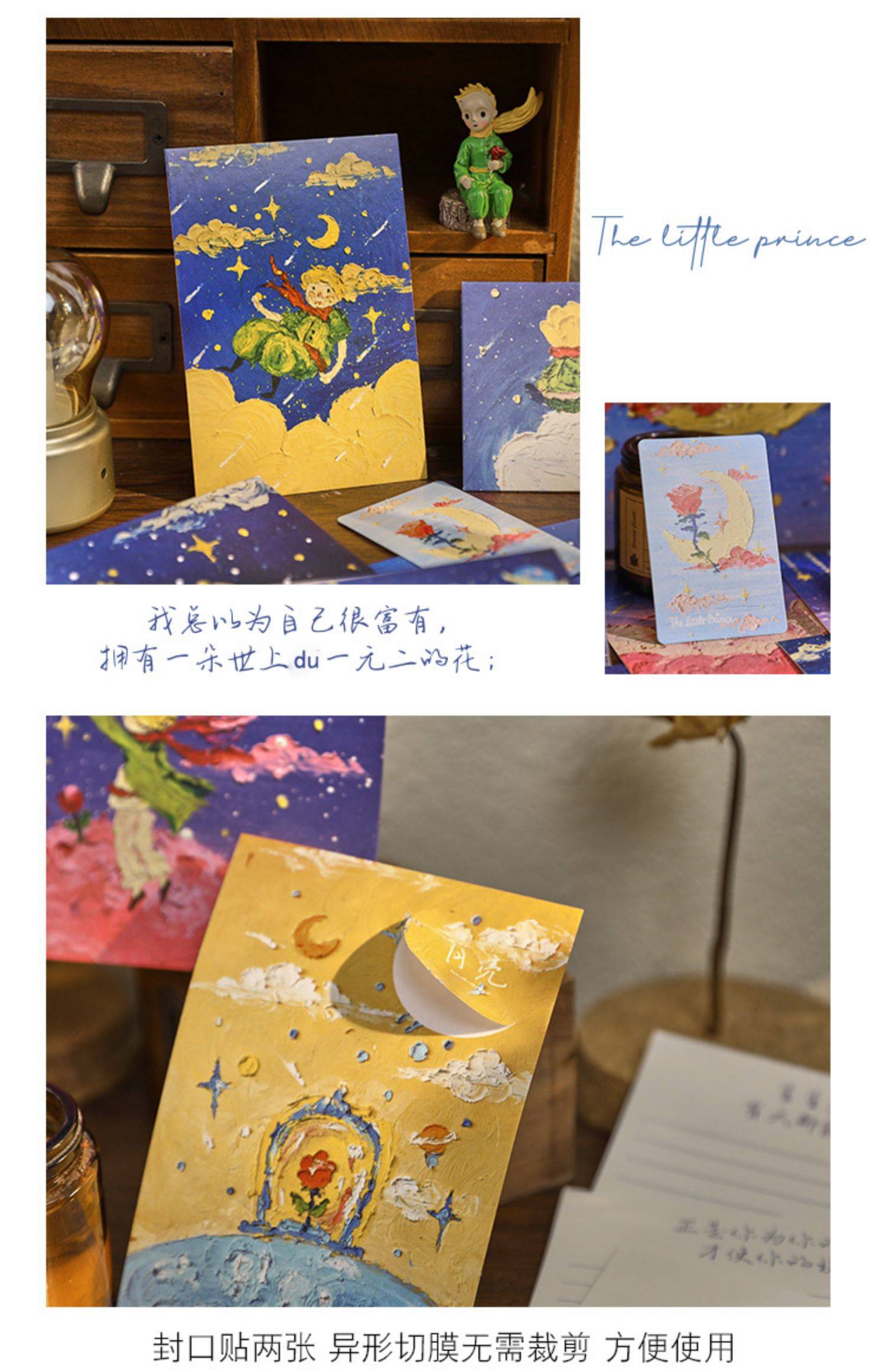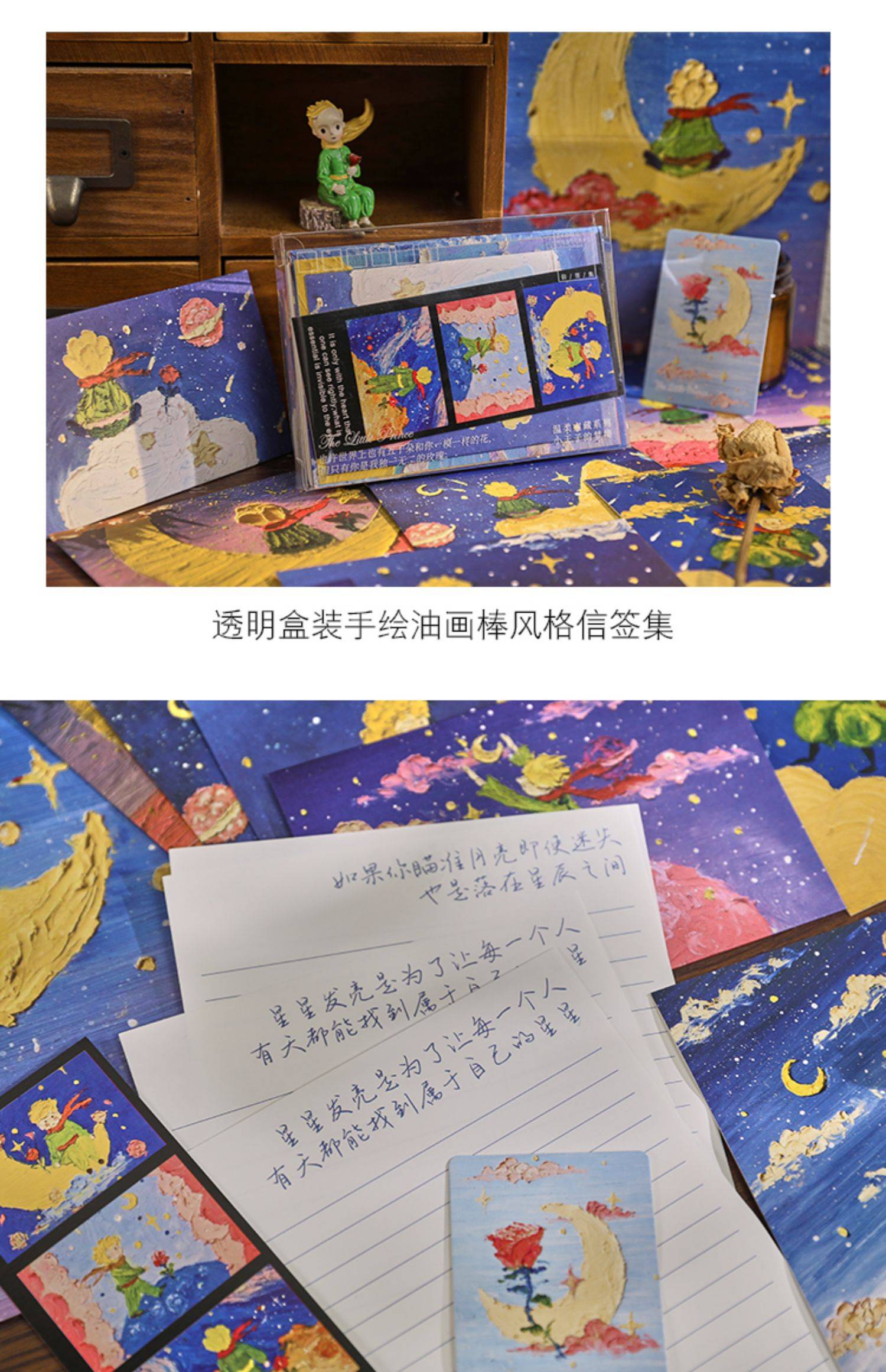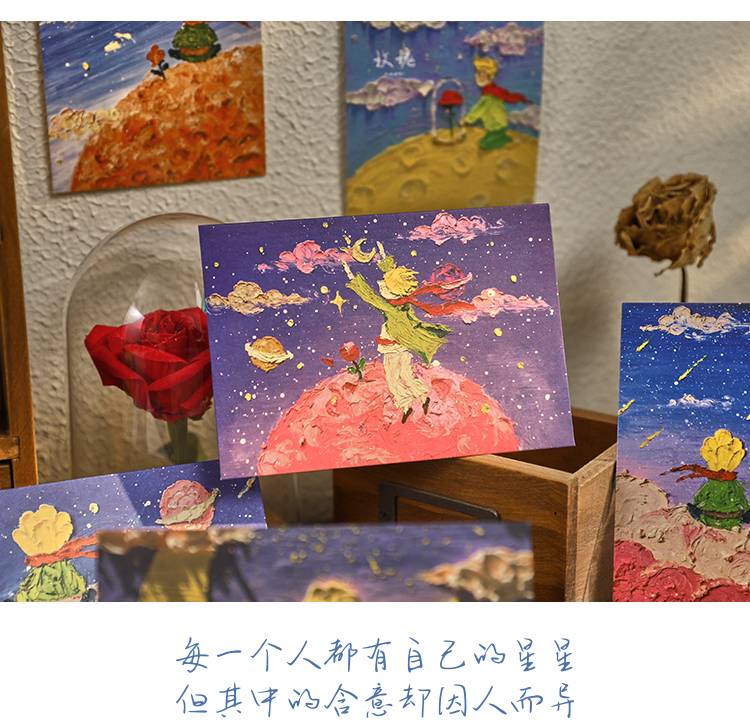 3D效果小王子油画棒浪漫治愈信封信纸ins风高级情书情侣复古文艺