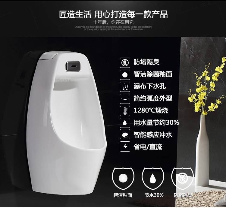 箭牌小便斗酒店工程智能感应小便器陶瓷尿斗壁挂式防臭成人小便池