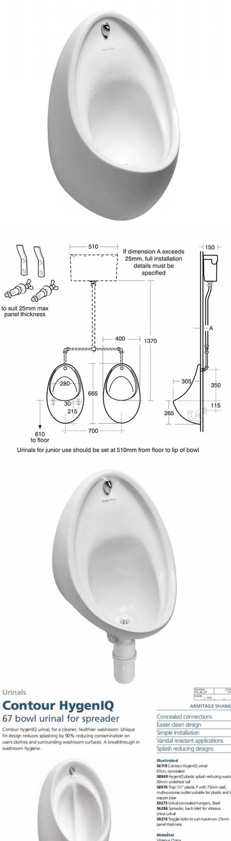 Contour hygenIQ 小便池,打造更清洁、更健康的洗手间。独特的翅片设计可减少 90% 的飞溅,减少用户衣服和周围洗手间表面的污染。洗手间卫生方面的突破。