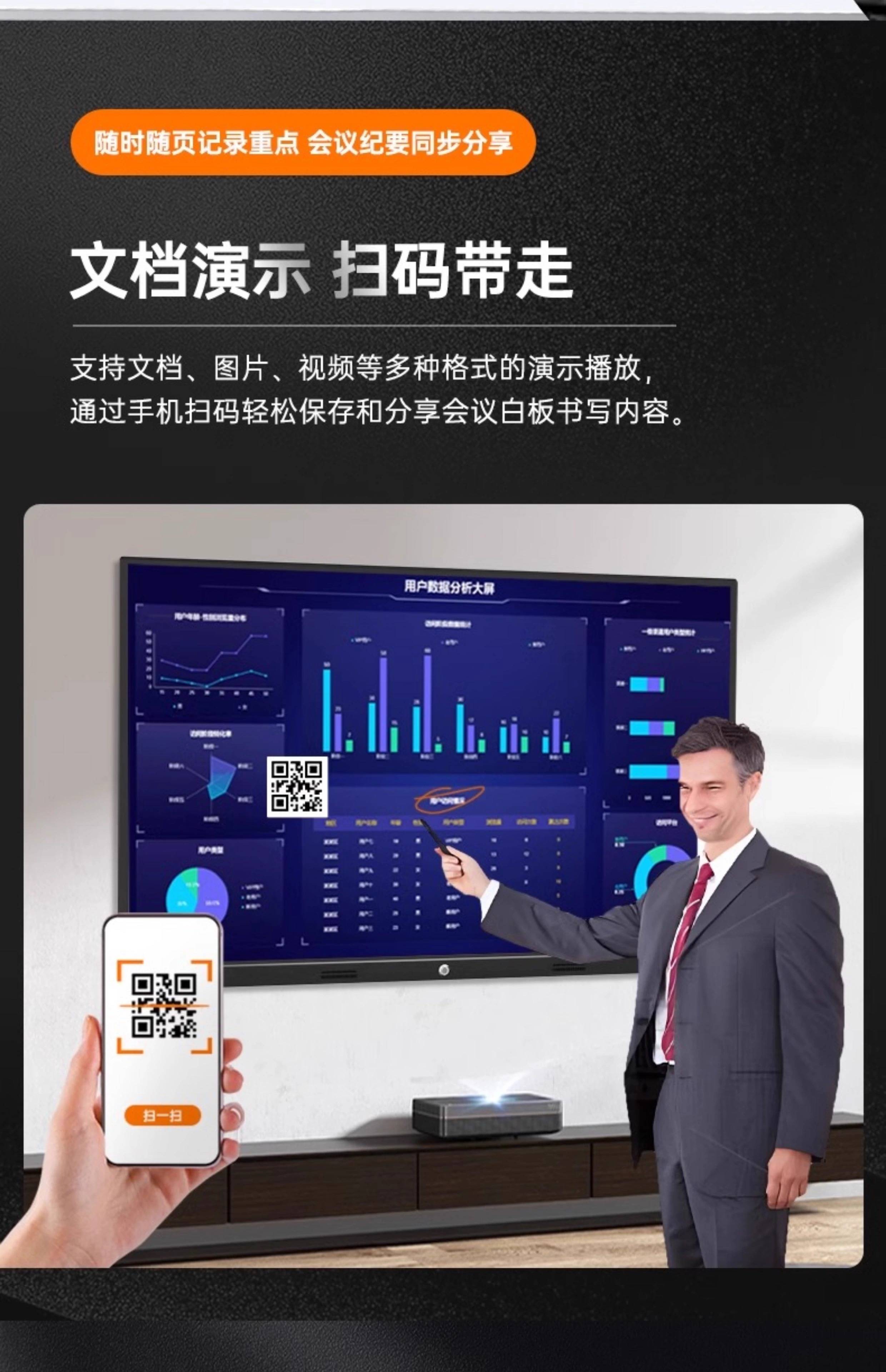 钮鹿客 110英寸白板教学一体机商用家用电视单系统i7四代 8+256G