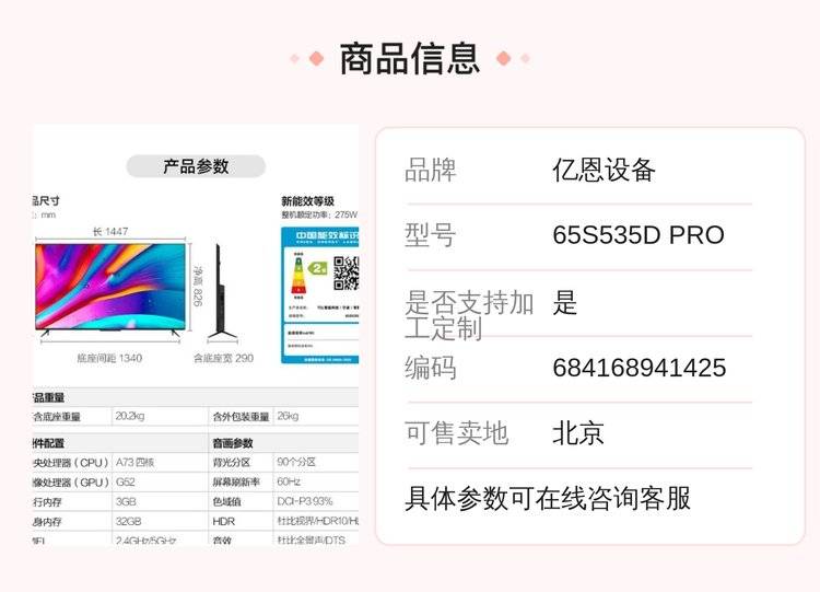 雷鸟 鹤6 65英寸4K高清智能网络语音智慧屏全面屏液晶电视机