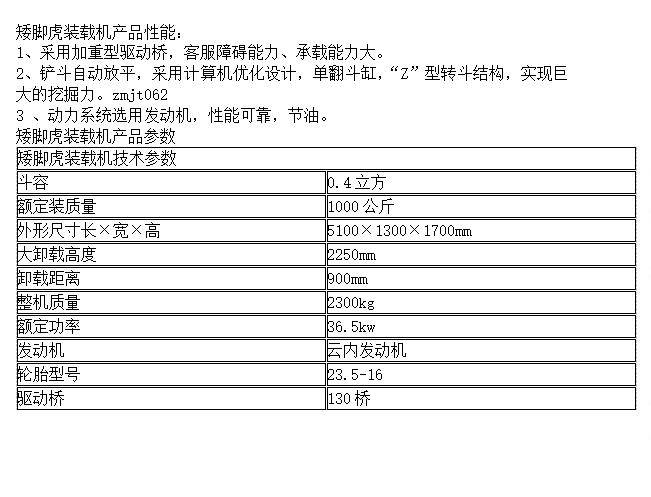 矮脚虎装载机 采用加重型驱动桥 承载能力大 易于维护