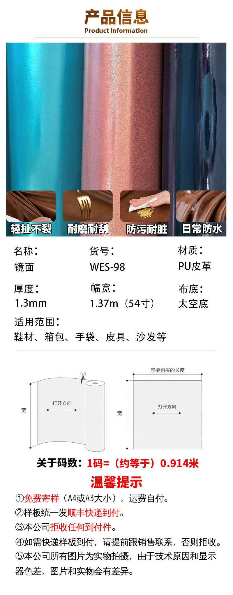 漆皮镜面太空底pu皮革面料 1.3厚鞋革箱包手袋 厂家定制人造革皮料