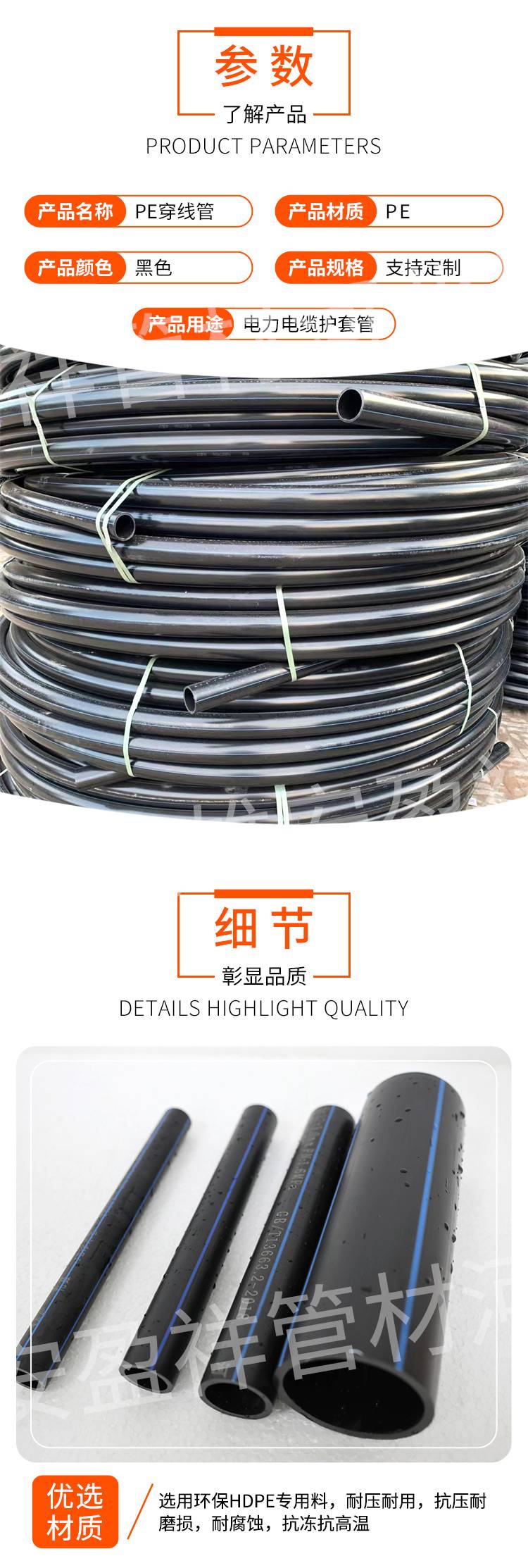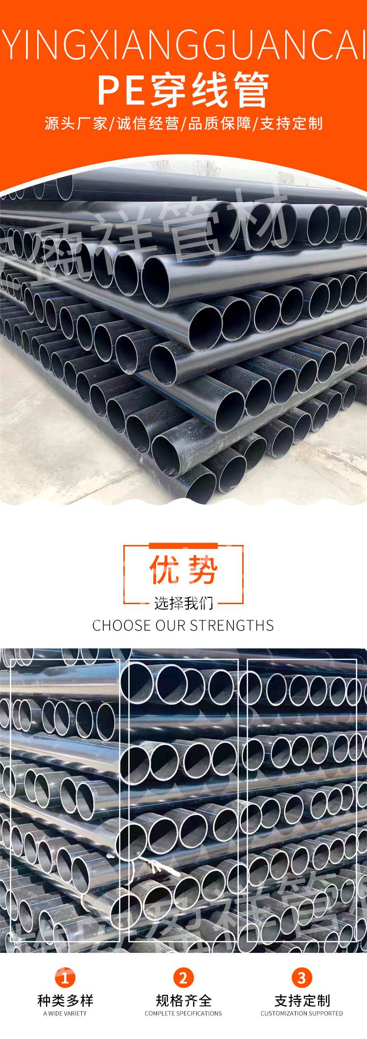 2222电力PE穿线管 高密度不易腐蚀 用于监控设备等 工程塑料管材 盈祥