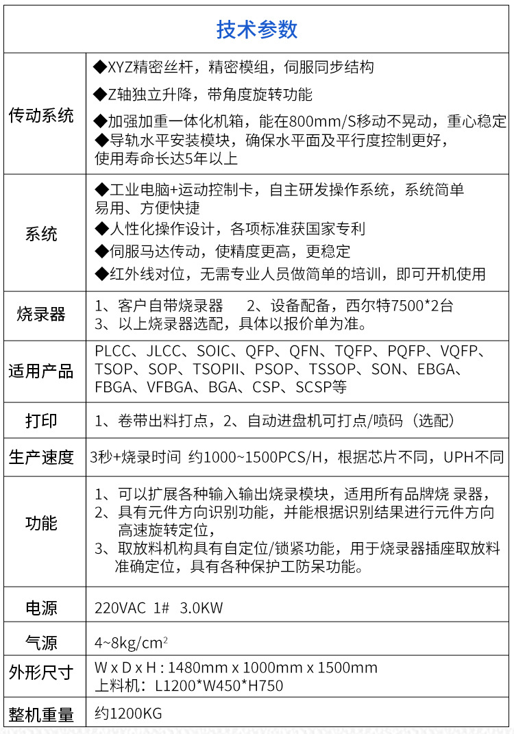 CB-AU910烧录机4吸嘴高速伺服IC烧录 机全自动CCD拍照自动识别打印
