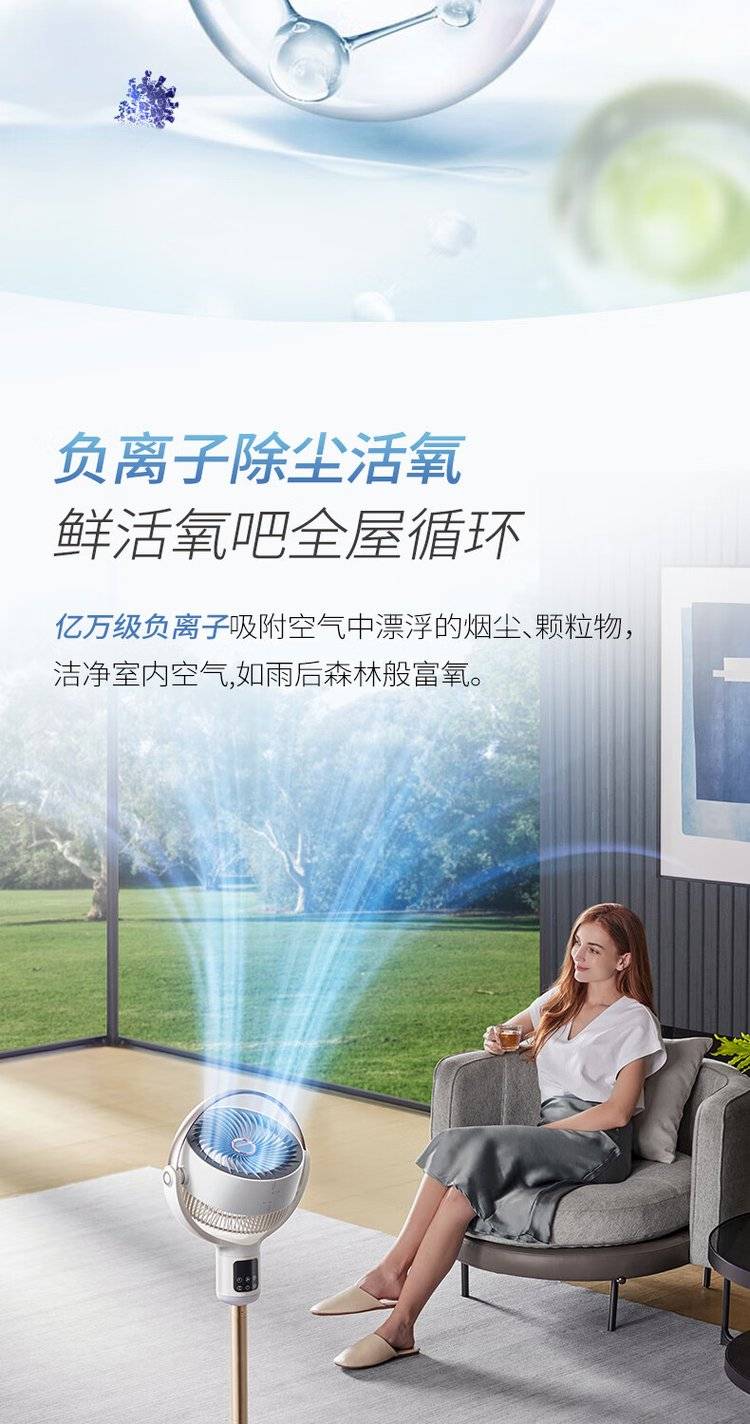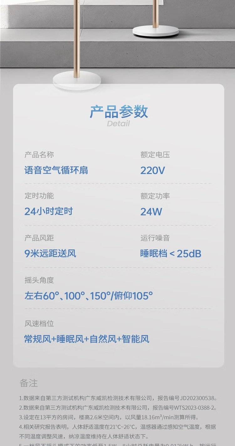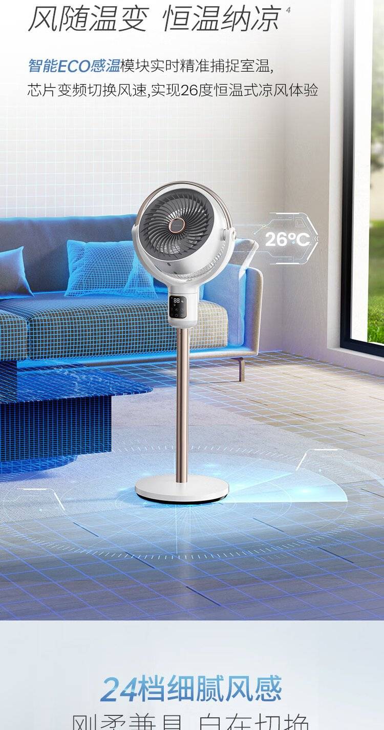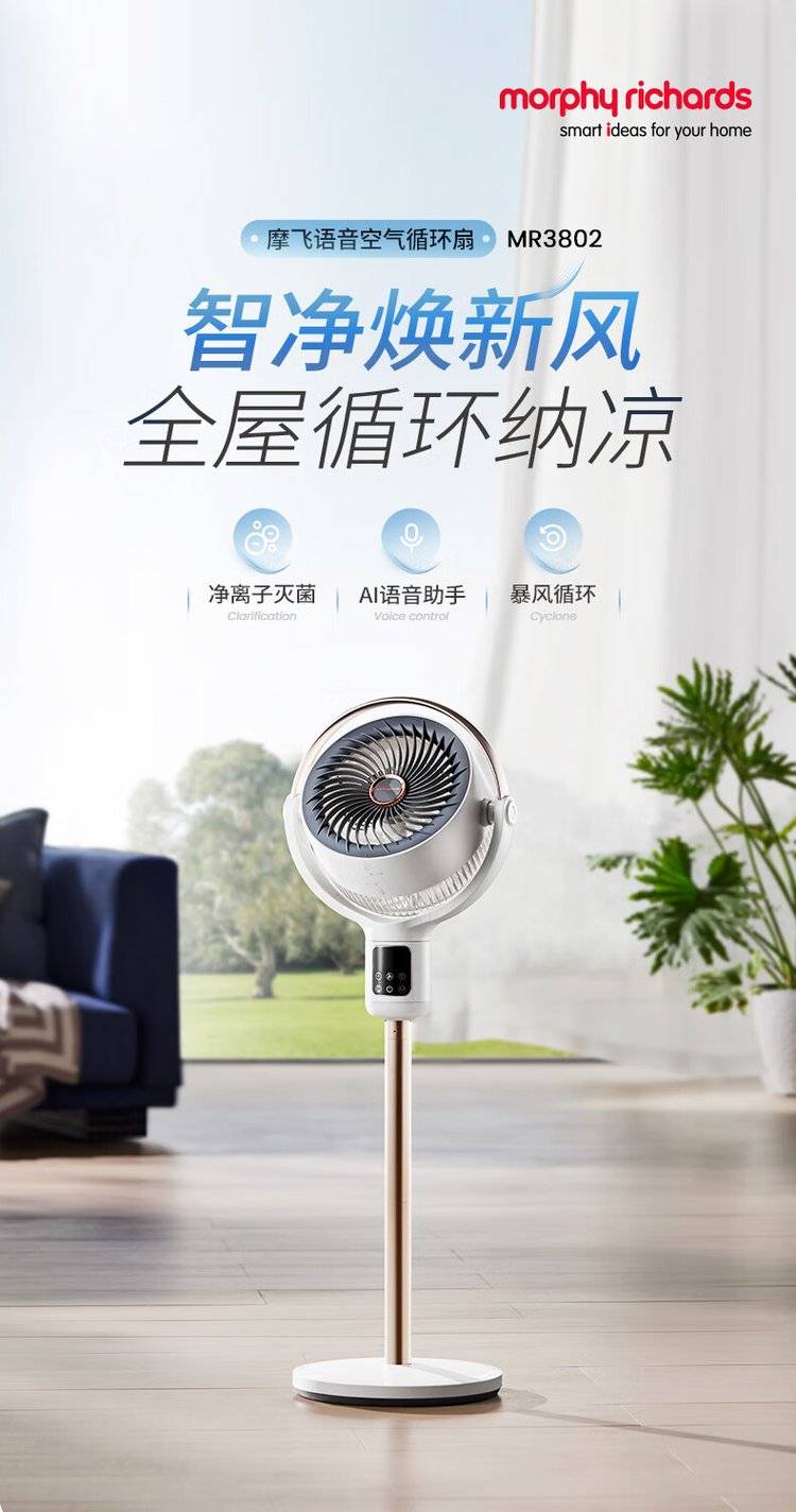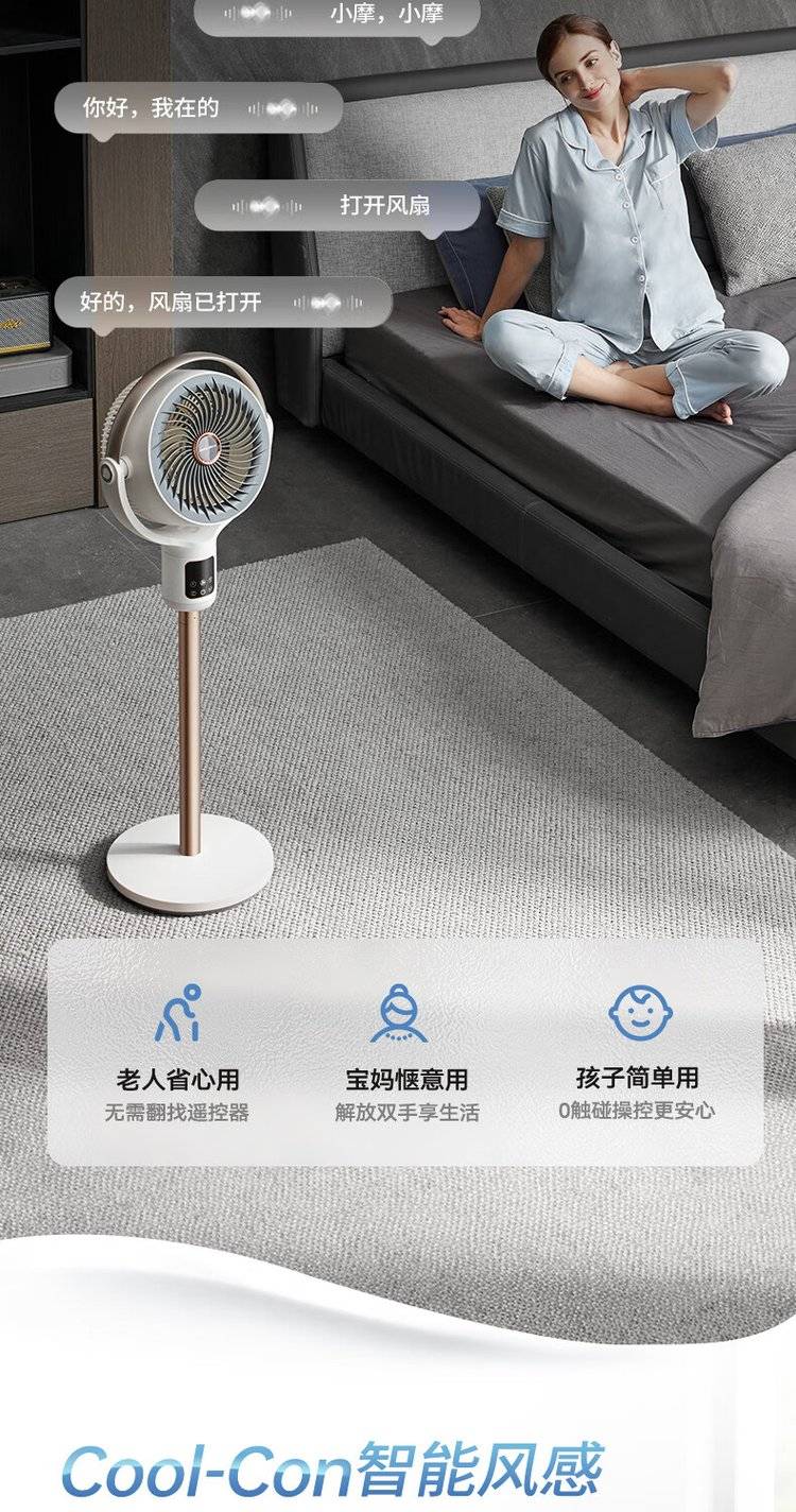 摩飞语音空气循环扇 MR3802 立式落地扇 变频摇头电风扇