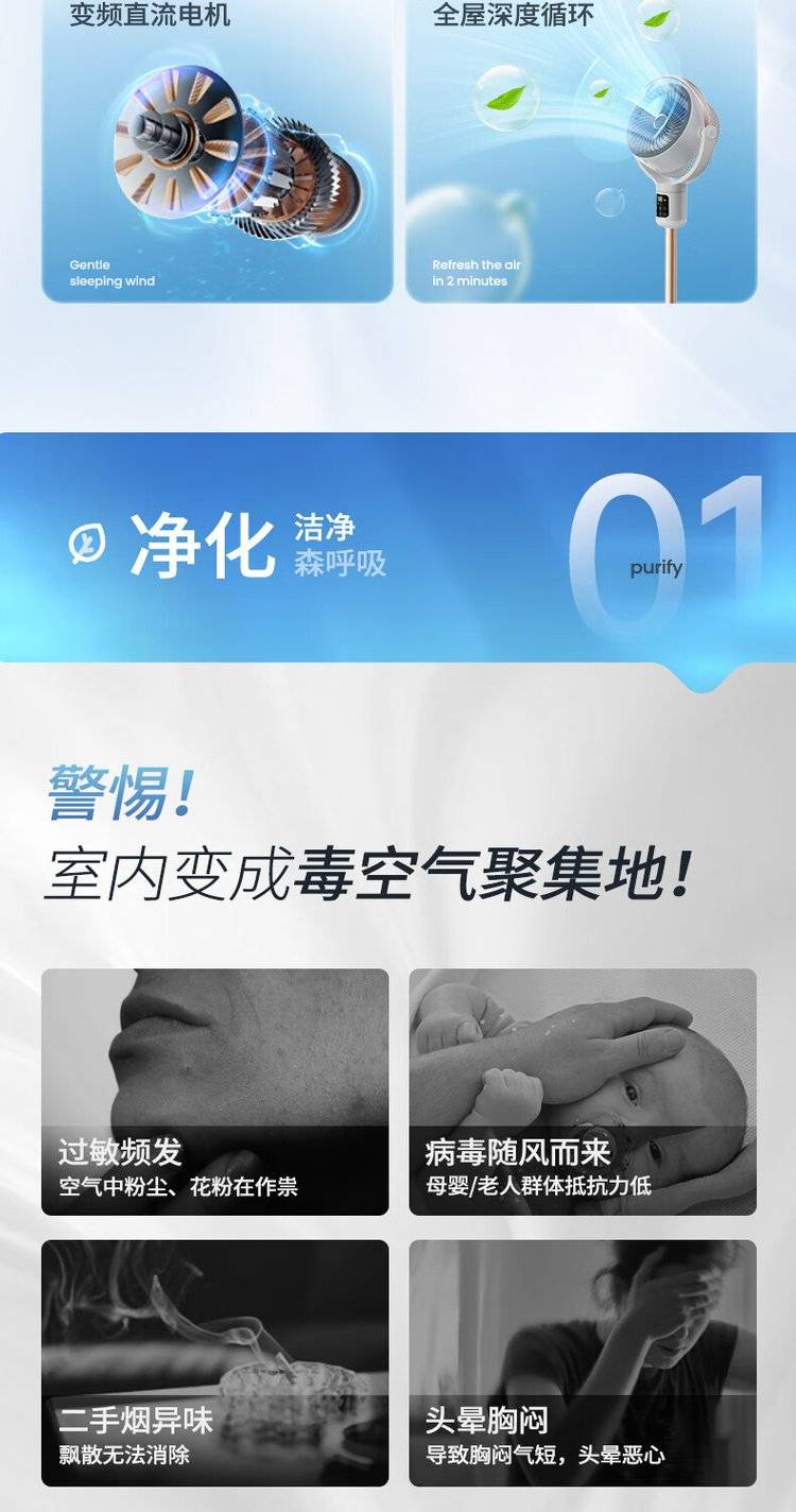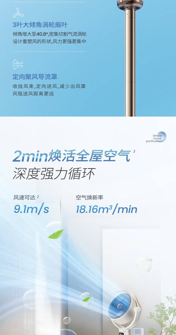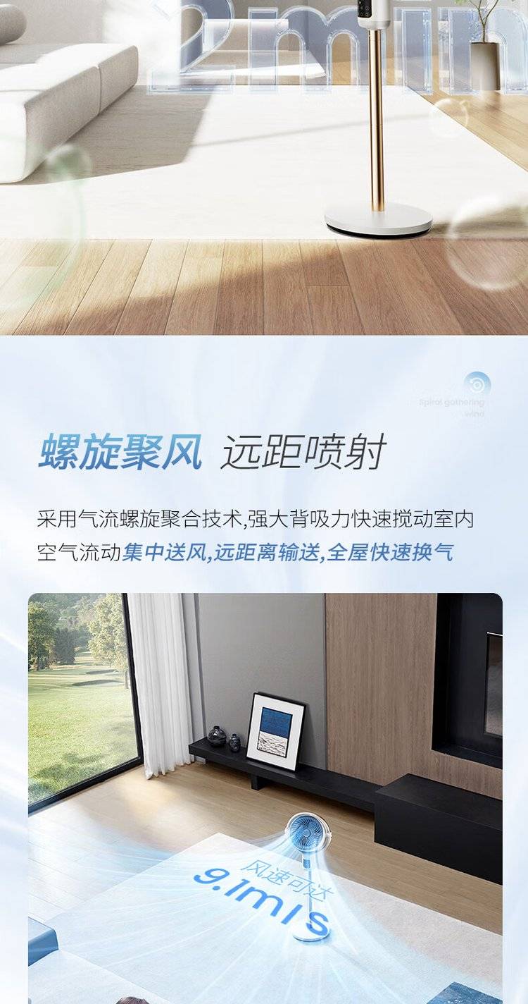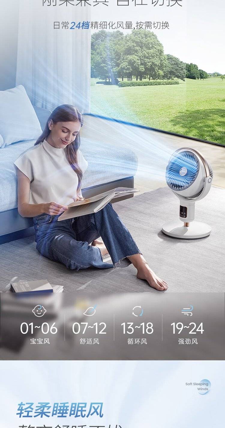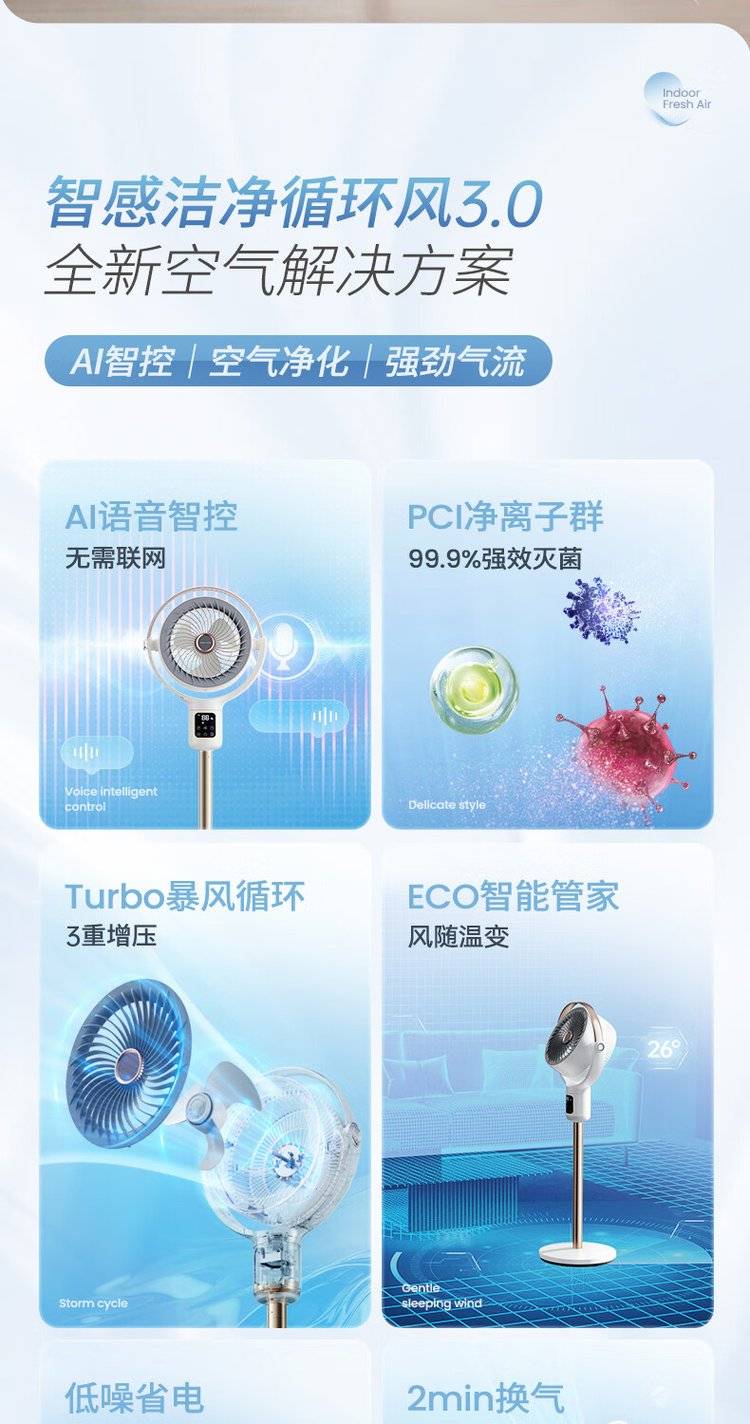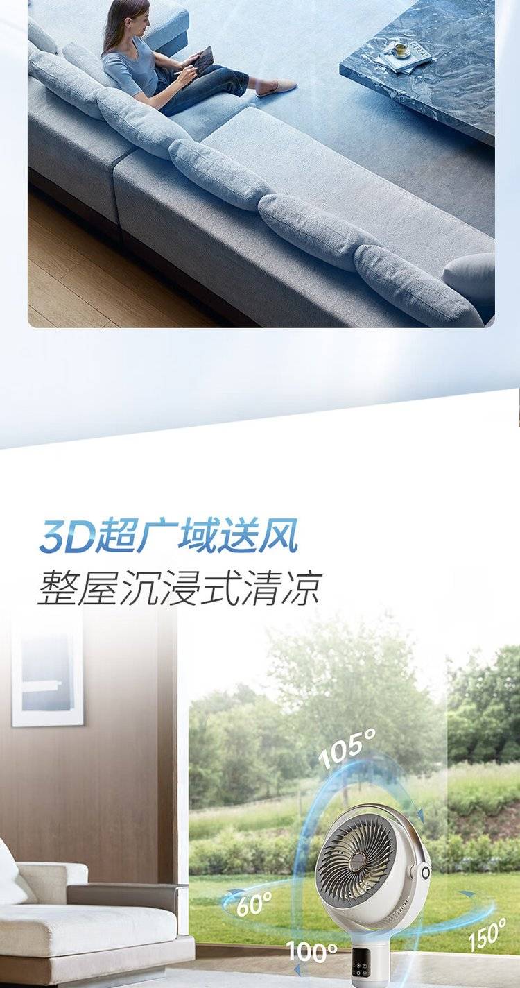 摩飞语音空气循环扇 MR3802 立式落地扇 变频摇头电风扇