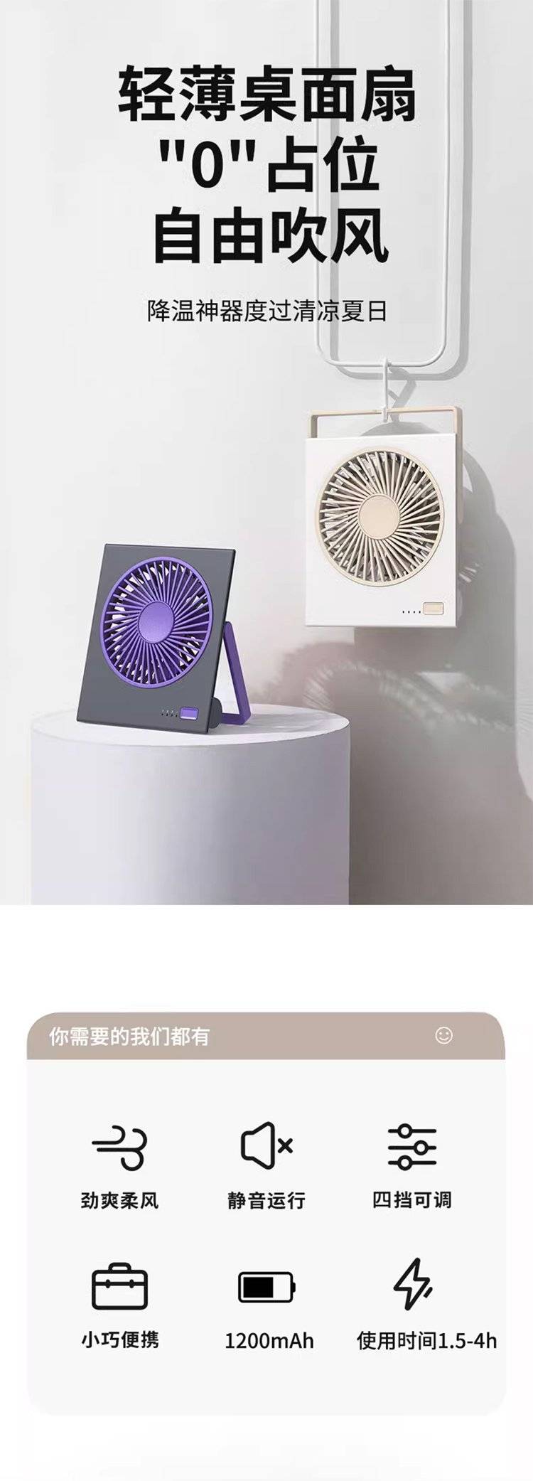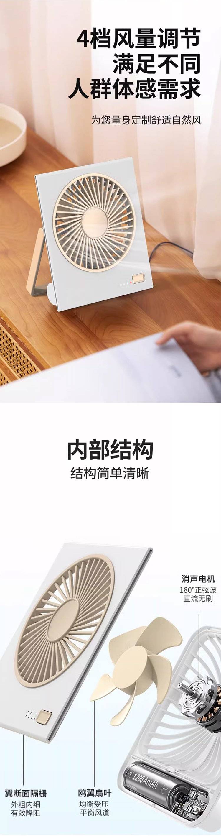 2025新款桌面风扇 超静音迷你便携式 床上超薄电风扇