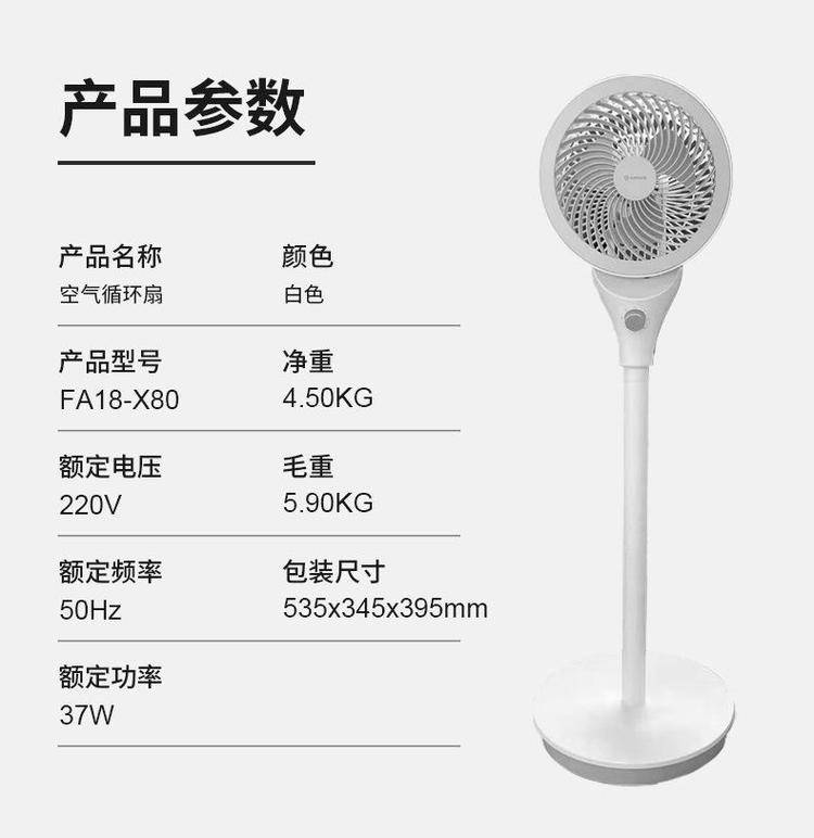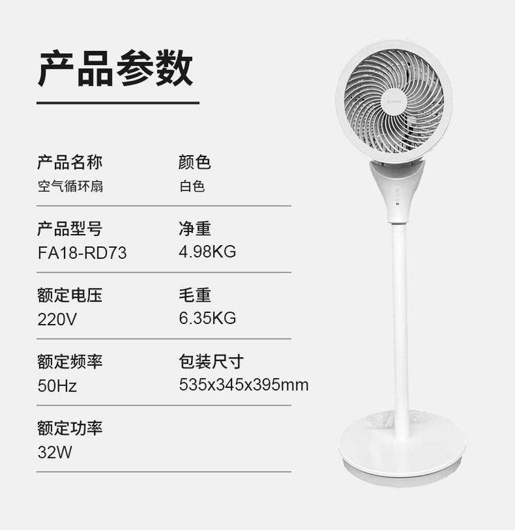 艾美特电风扇空气循环扇台扇家用遥控落地电扇FA18-X80/RD73