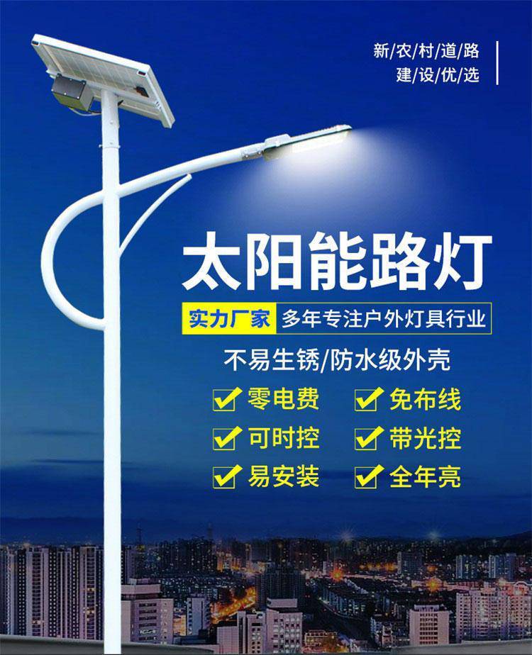 乡镇街道6米60瓦新建锂电LED路灯 高亮无频闪低压太阳能灯
