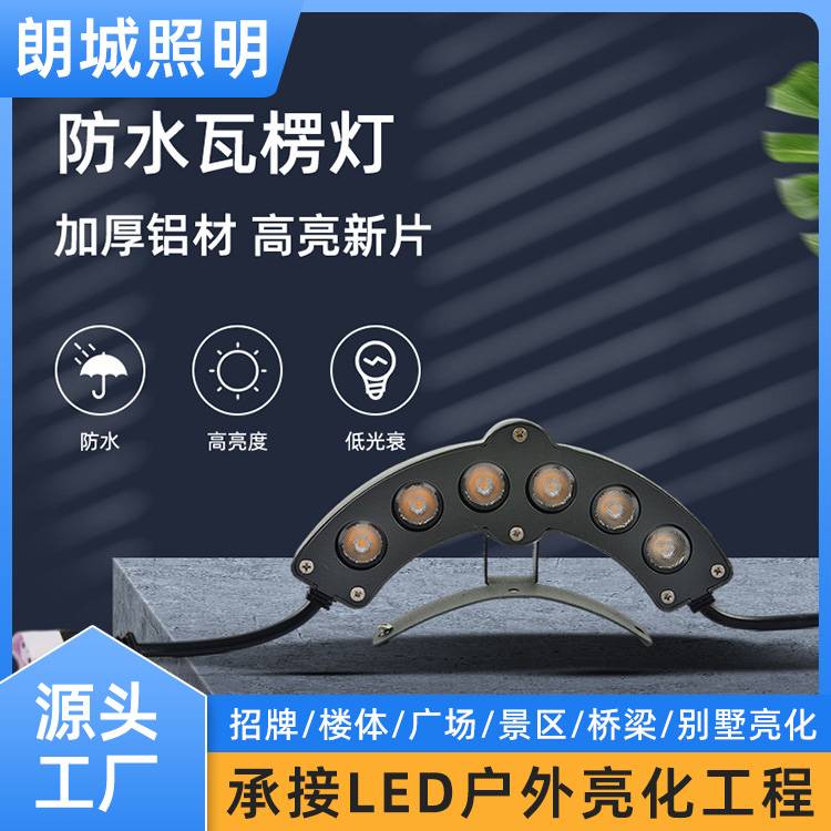工程LED瓦楞灯户外防水古楼灯光亮化瓦片灯6W低压高压输入月牙灯