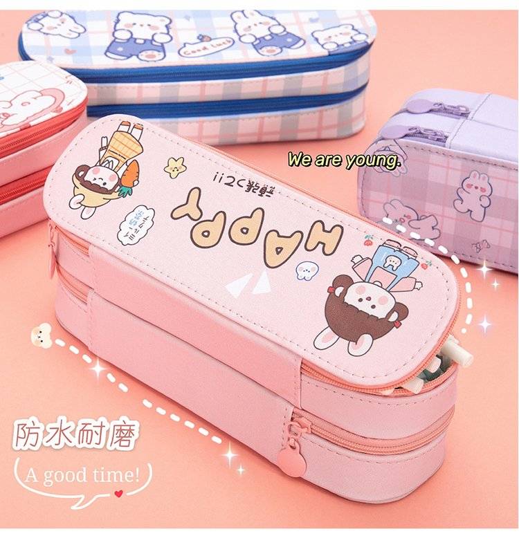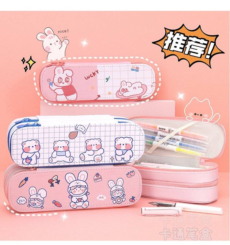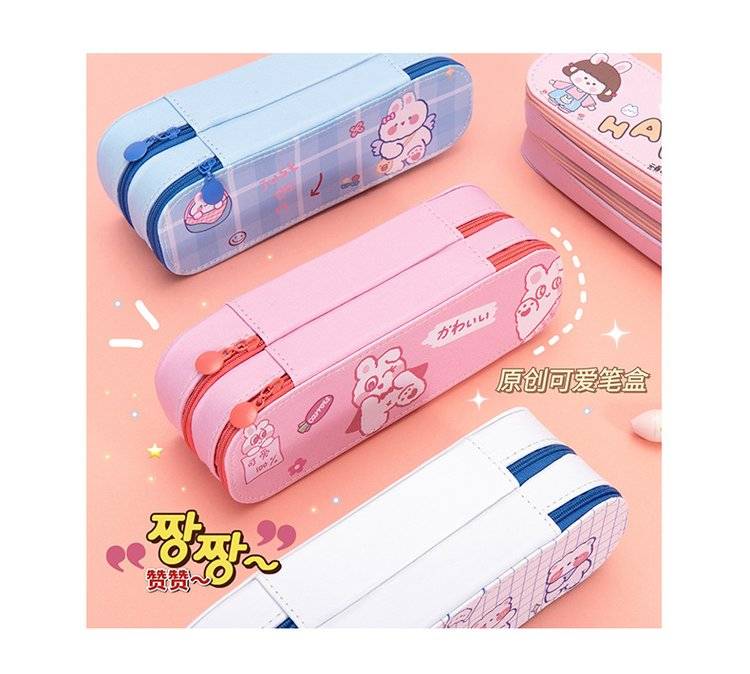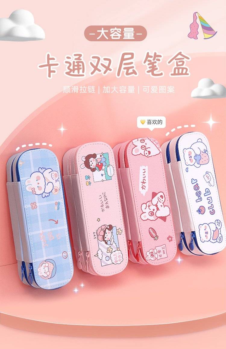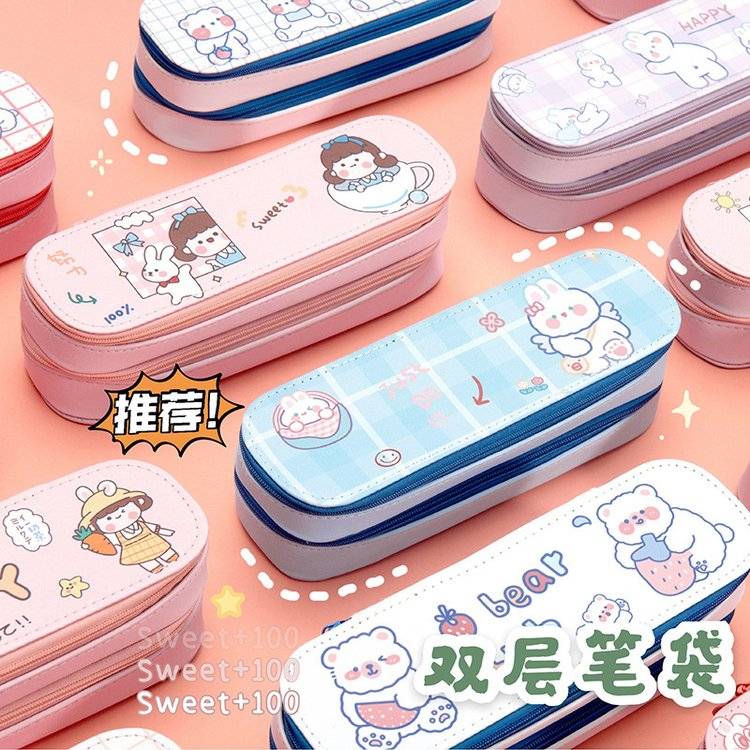 创意双层笔袋 大容量简约PU皮 少女心学生可爱文具铅笔盒开学礼物