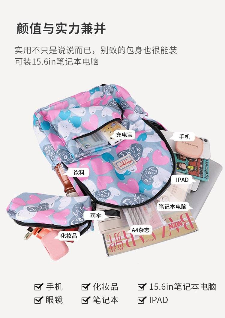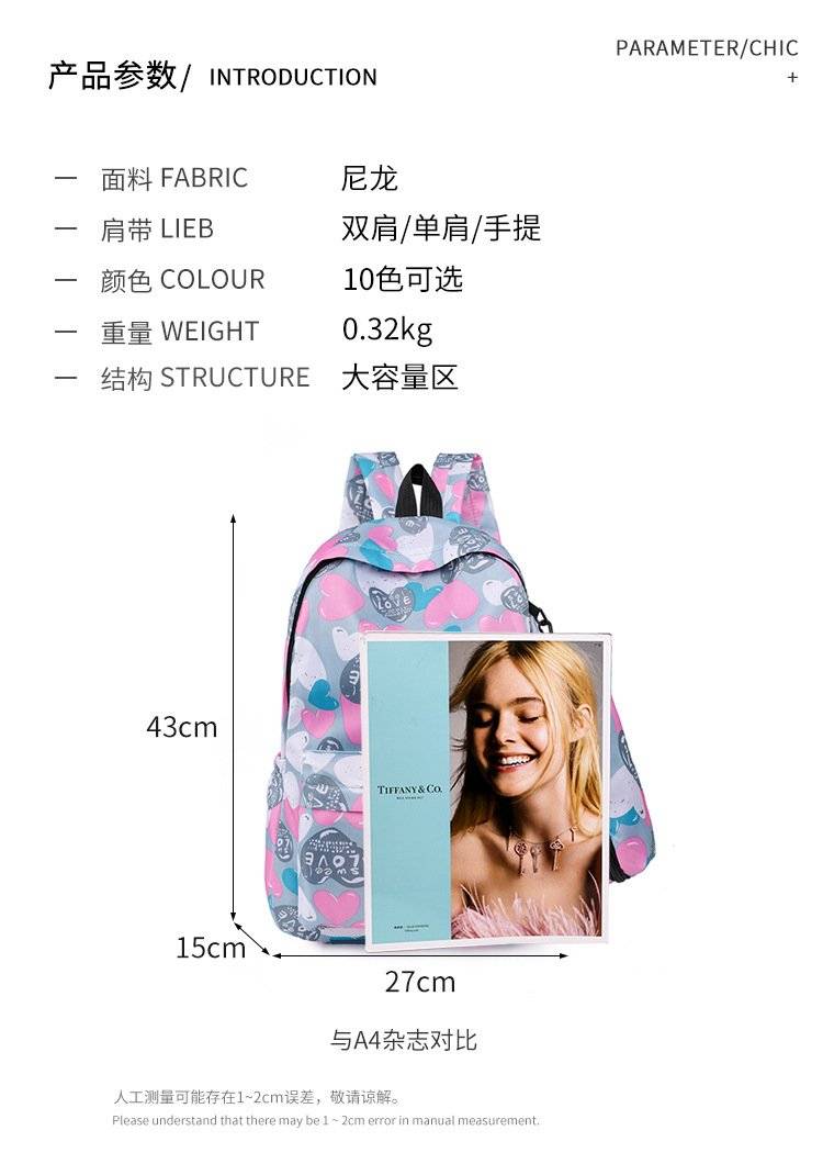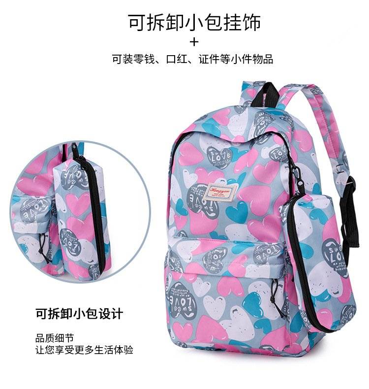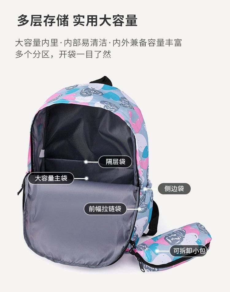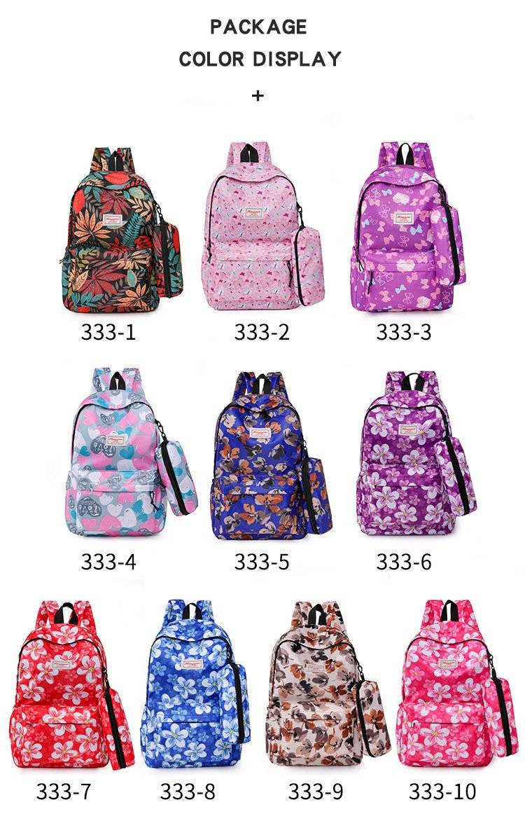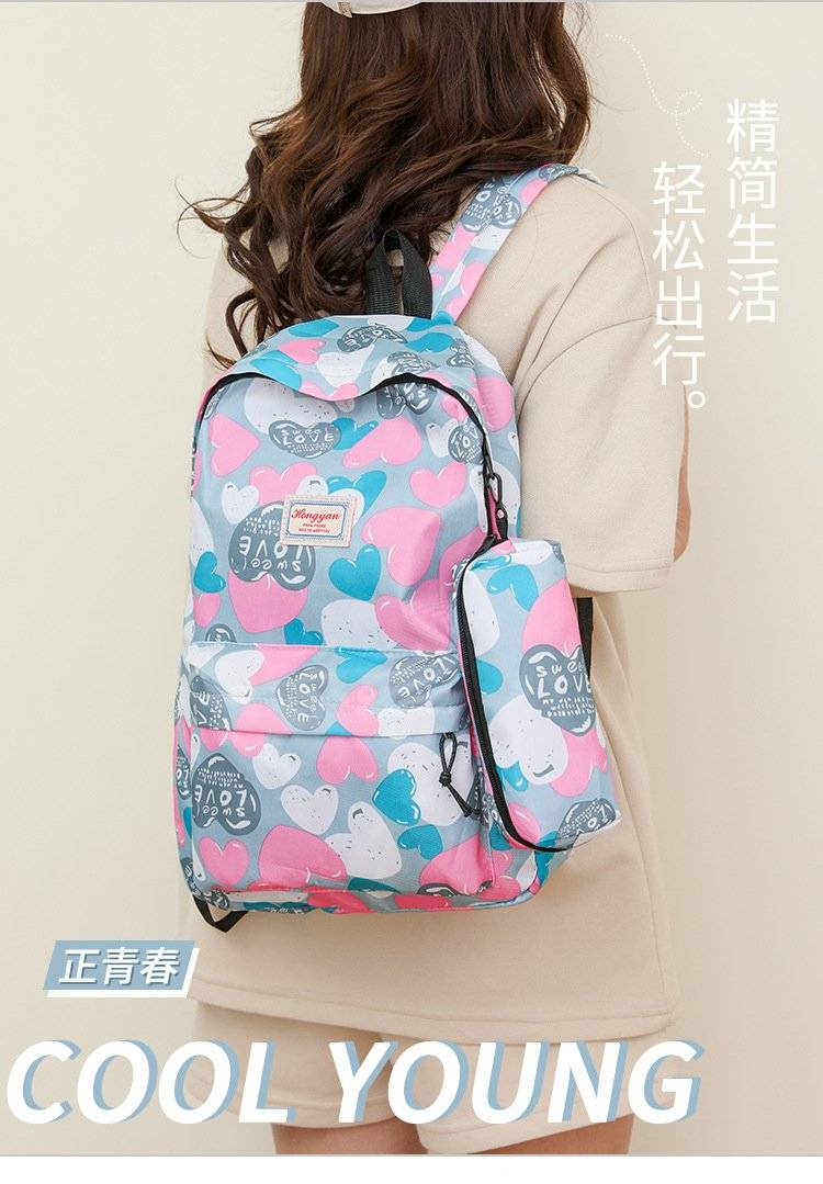 新款中大学生书包 个性多彩印花双肩包 笔袋两件套 学生背包 可代发