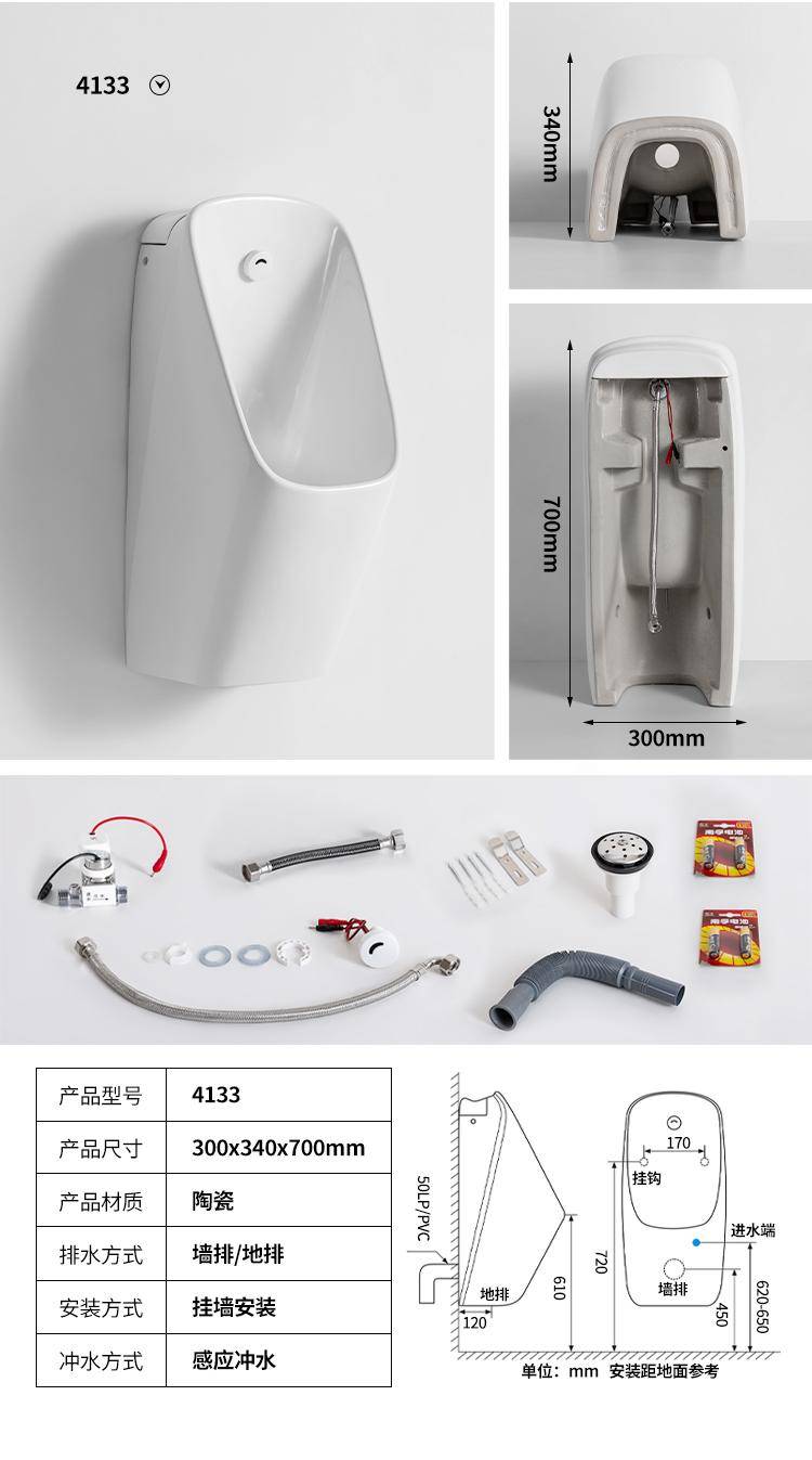 3Y智能小便池落地小便斗挂墙式感应小便槽壁挂式便池男式成人小便