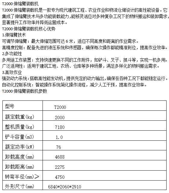 T2000伸缩臂装载机可灵活应对多种复杂工况 输赢范围广