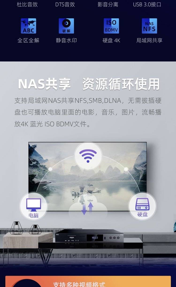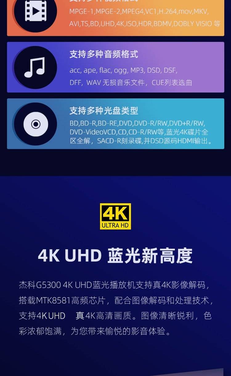 GIEC杰科BDP-G5300真4K UHD蓝光播放机dvd影碟机高清硬盘播放器