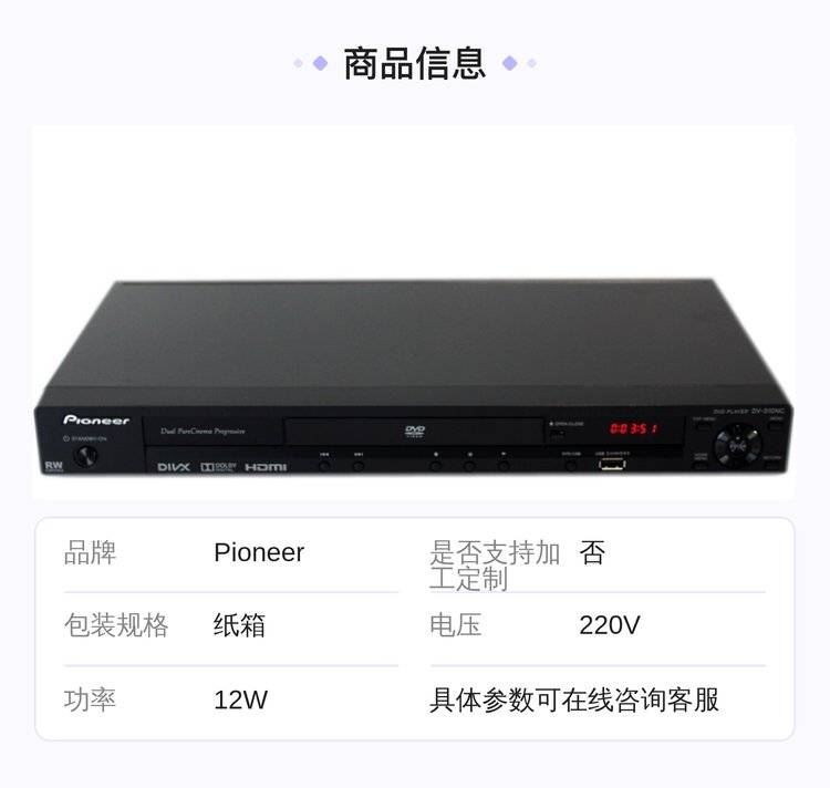Pioneer/先锋 DV-310NC-G/K 高清播放机家用dvd播放器影碟机