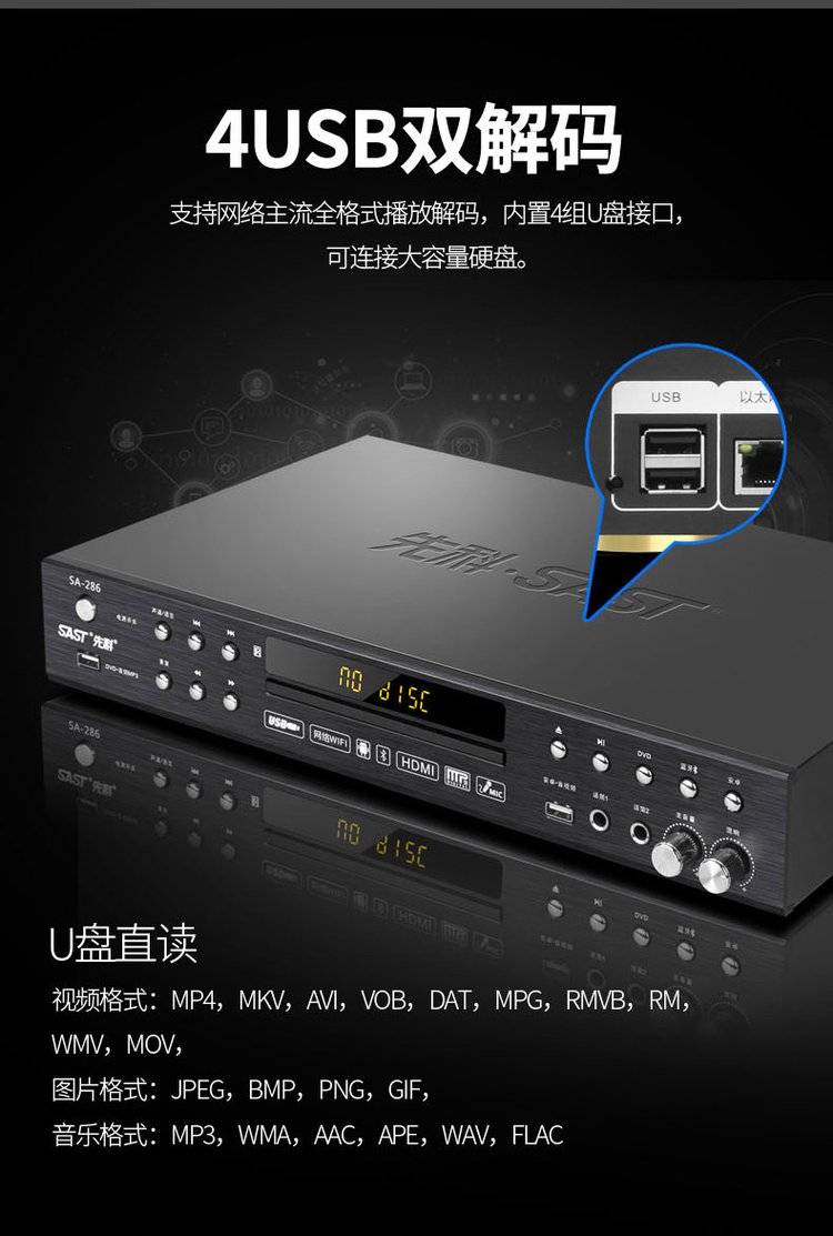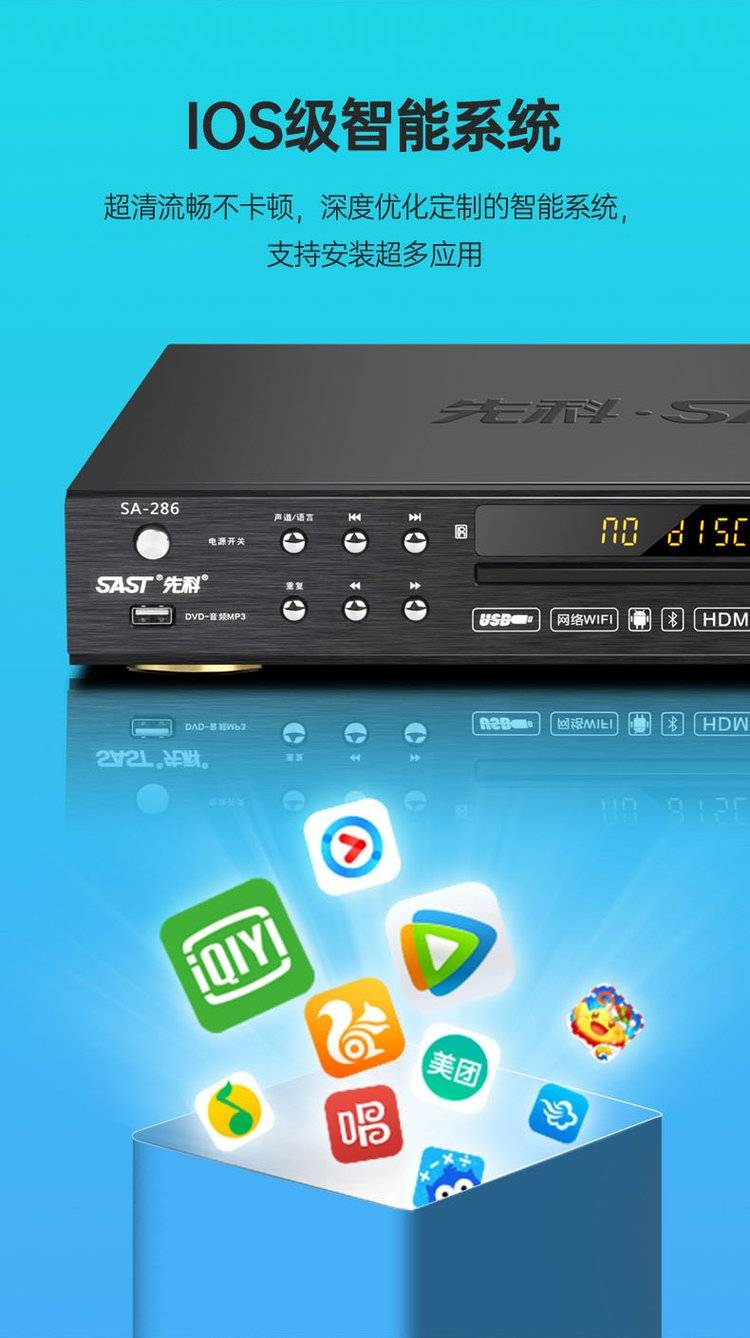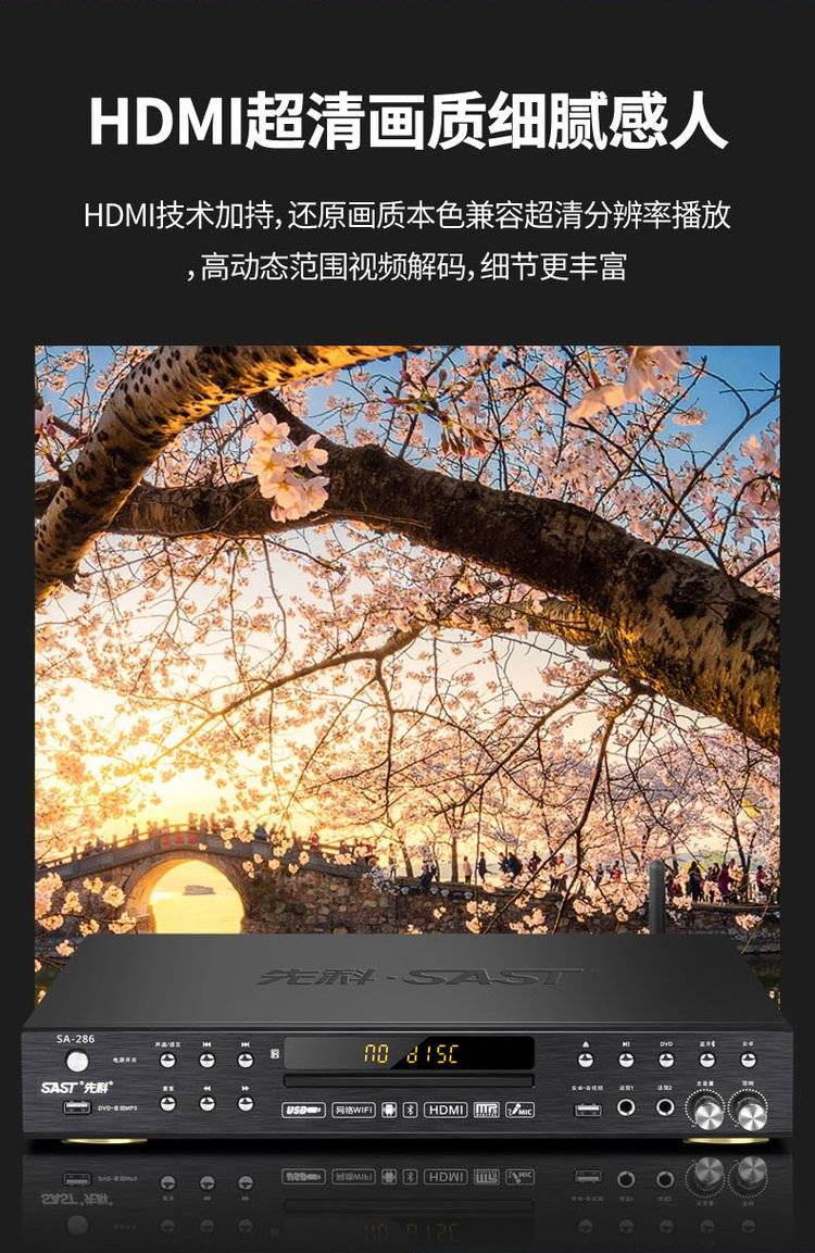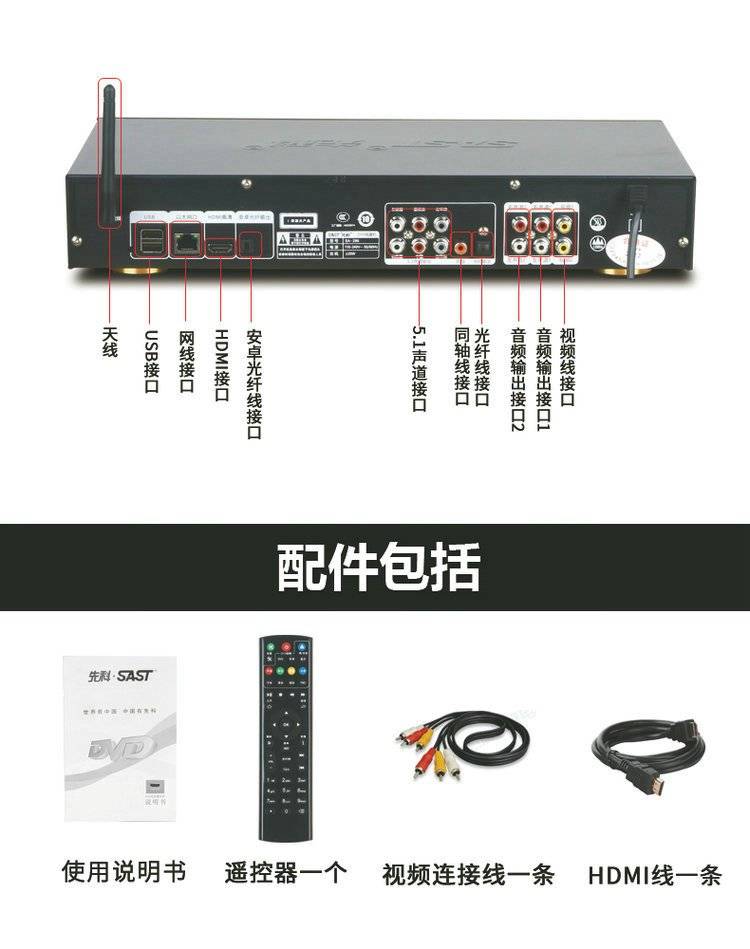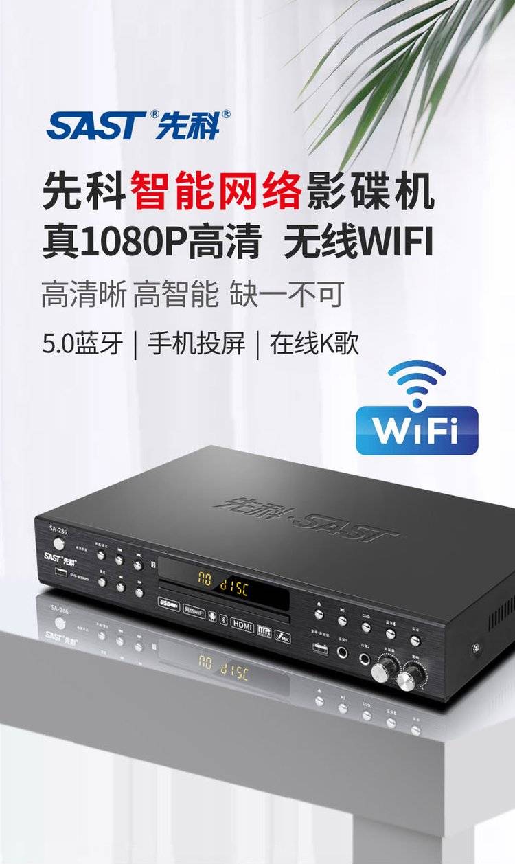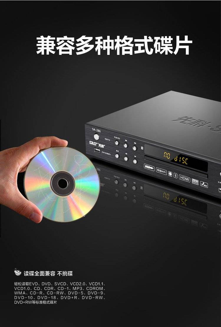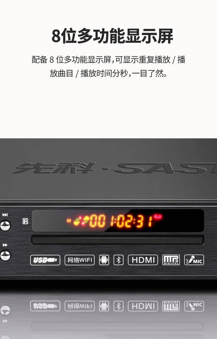 SAST先科网络dvd播放机全格式家用高清投屏蓝牙vcd影碟机无损cd机
