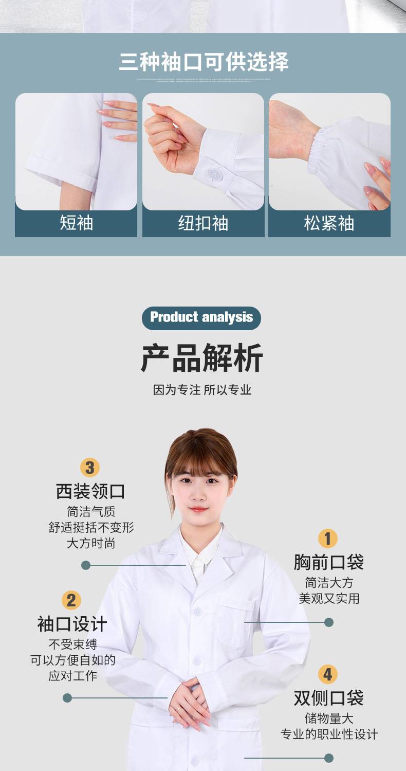 博尔雅学生实验服白大褂男女医生护士药店工厂医药礼品修身工作服