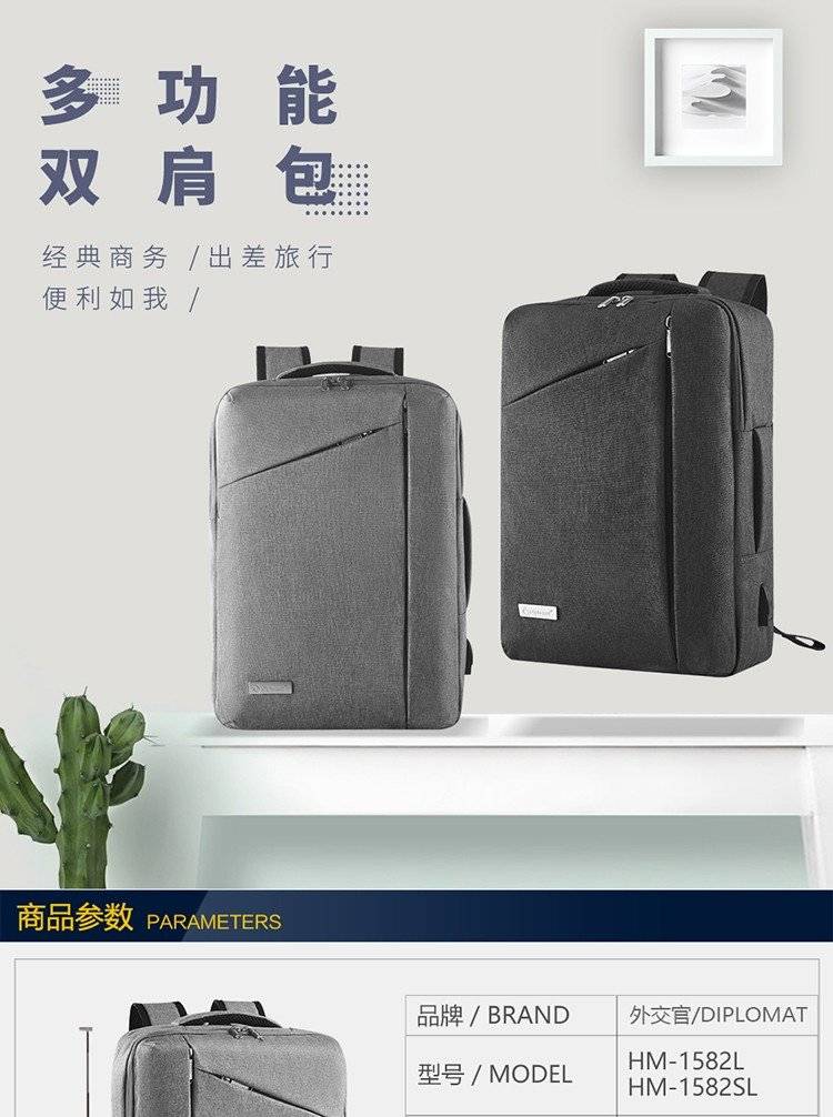 外交官休闲商务双肩包纯色通勤背包学生会议办公福利礼品HM1582SL