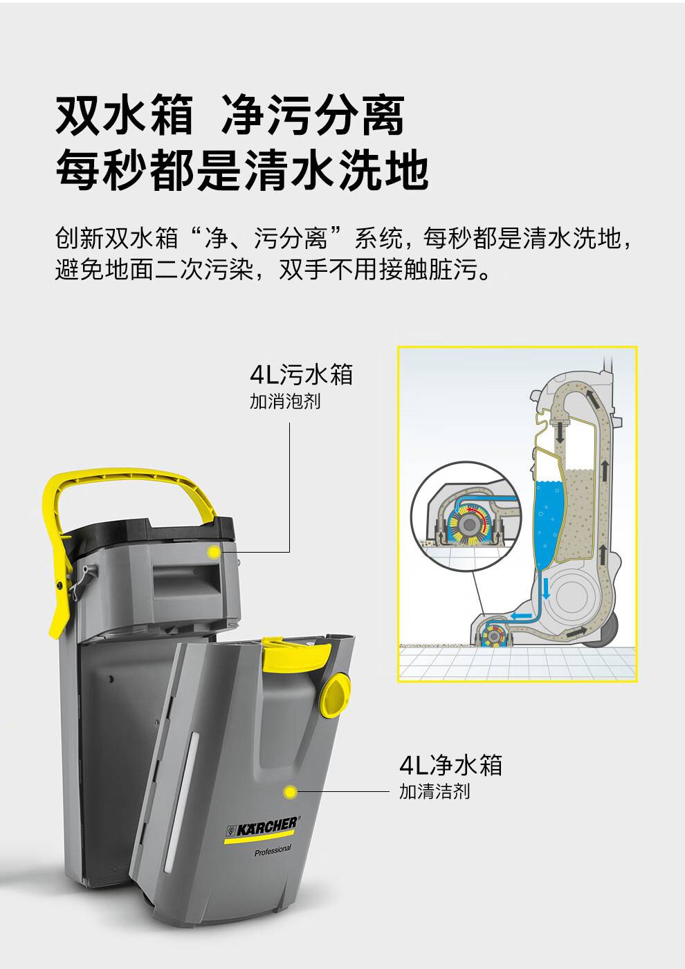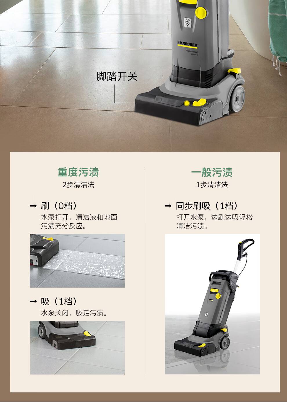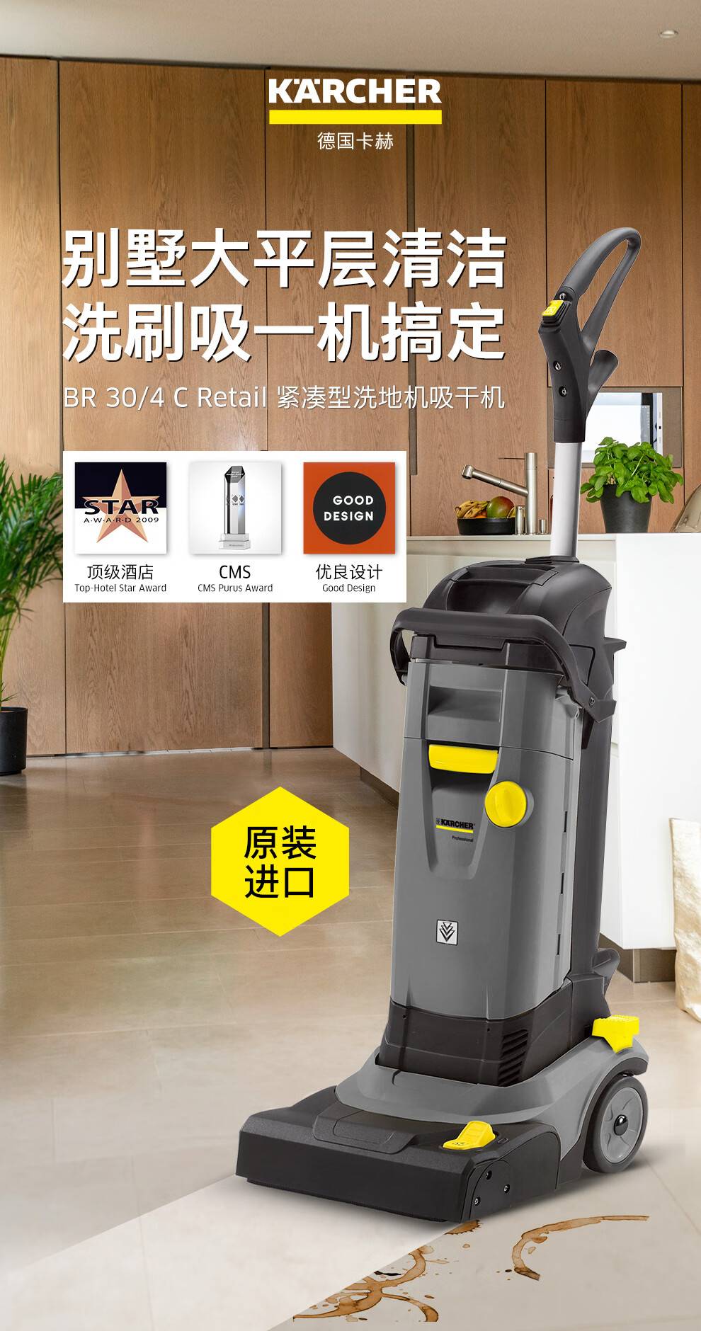 卡赫洗地机别墅大平层清洁家商用物业小型手推式吸拖一体BR30/4C
