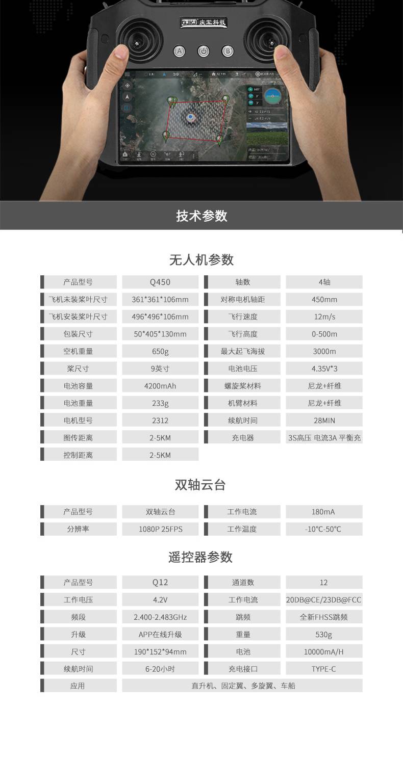 庆军科技AOPA考试入门级航拍教练无人机 教学培训遥控飞机Q450