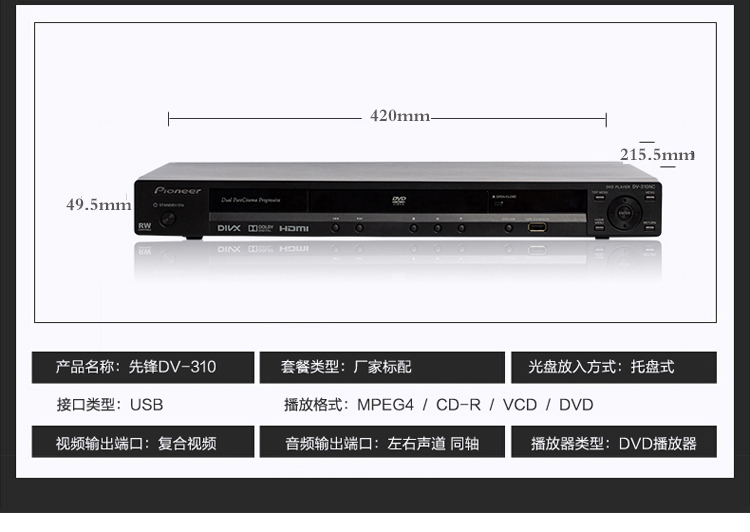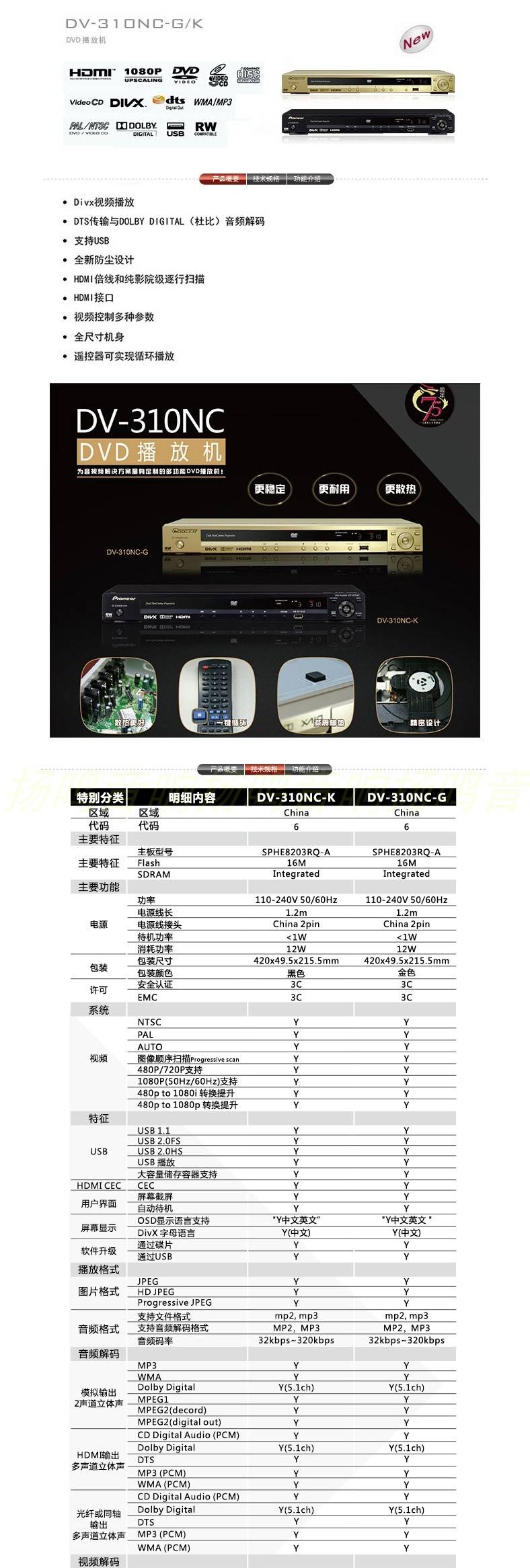 Pioneer/先锋 DV-310NC-G/K 高清播放机家用dvd播放器影碟机 包邮