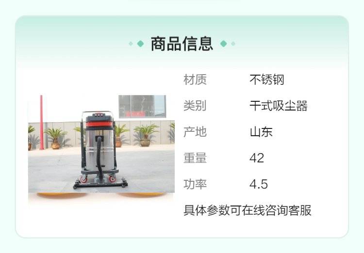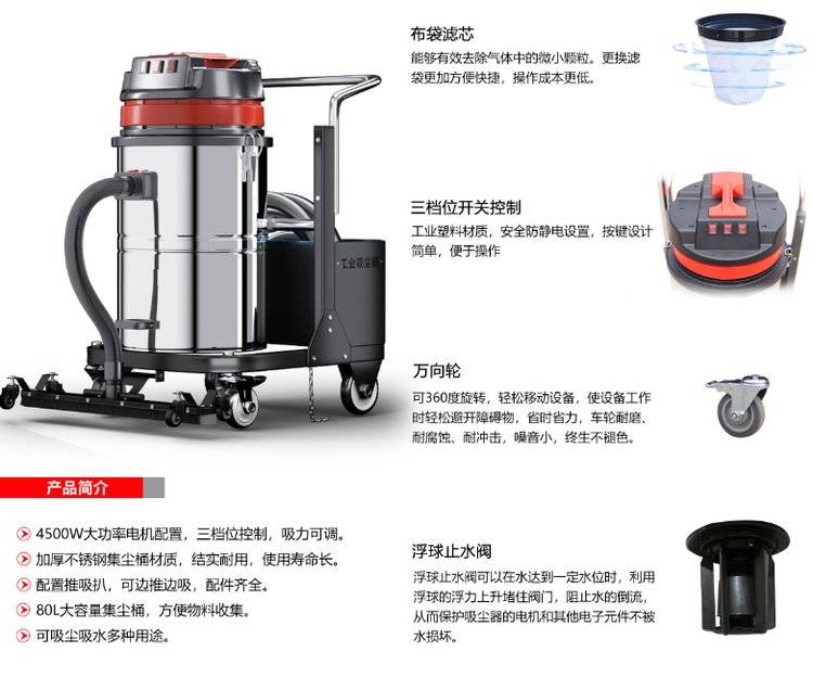不锈钢干式工业吸尘器 42kg重4.5kW功率室内室外吸尘器