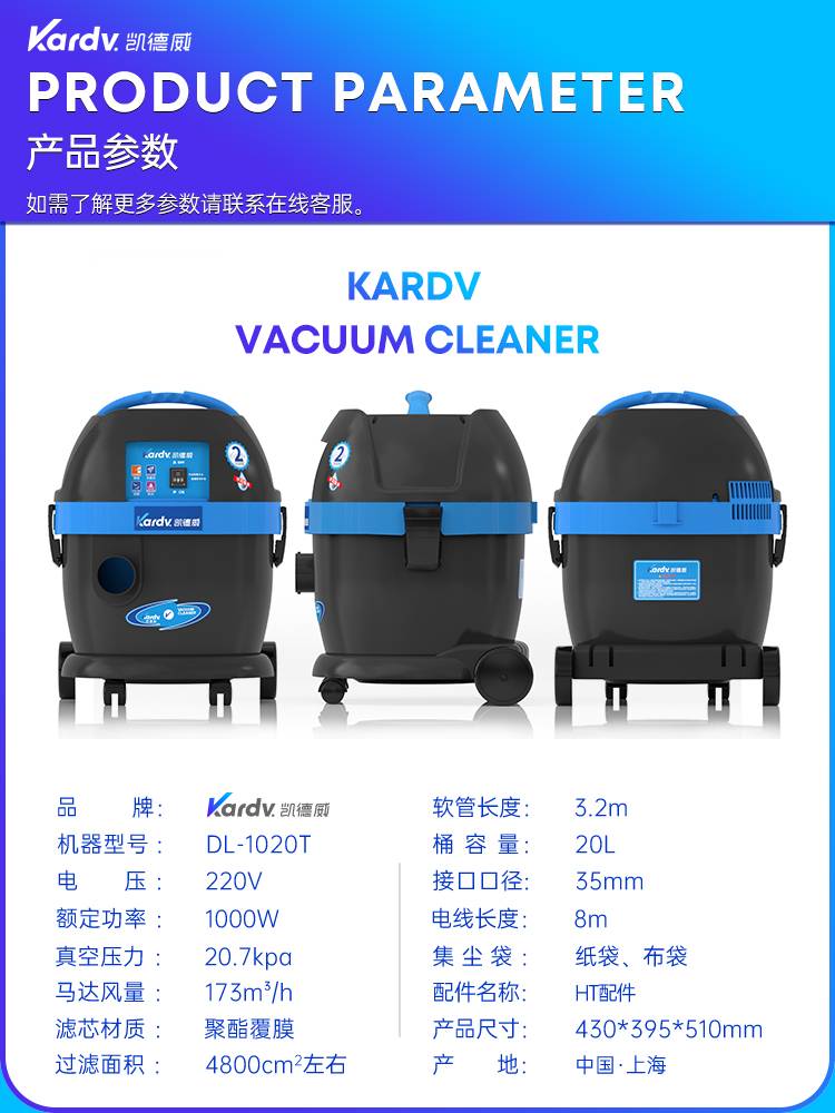 凯德威吸尘器DL-1020T酒店宾馆用低噪音20L容量