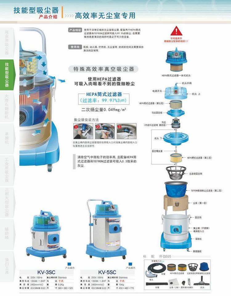 韩国KV5SC是一款24升的经济无尘室吸尘器可用于百级洁净无尘车间