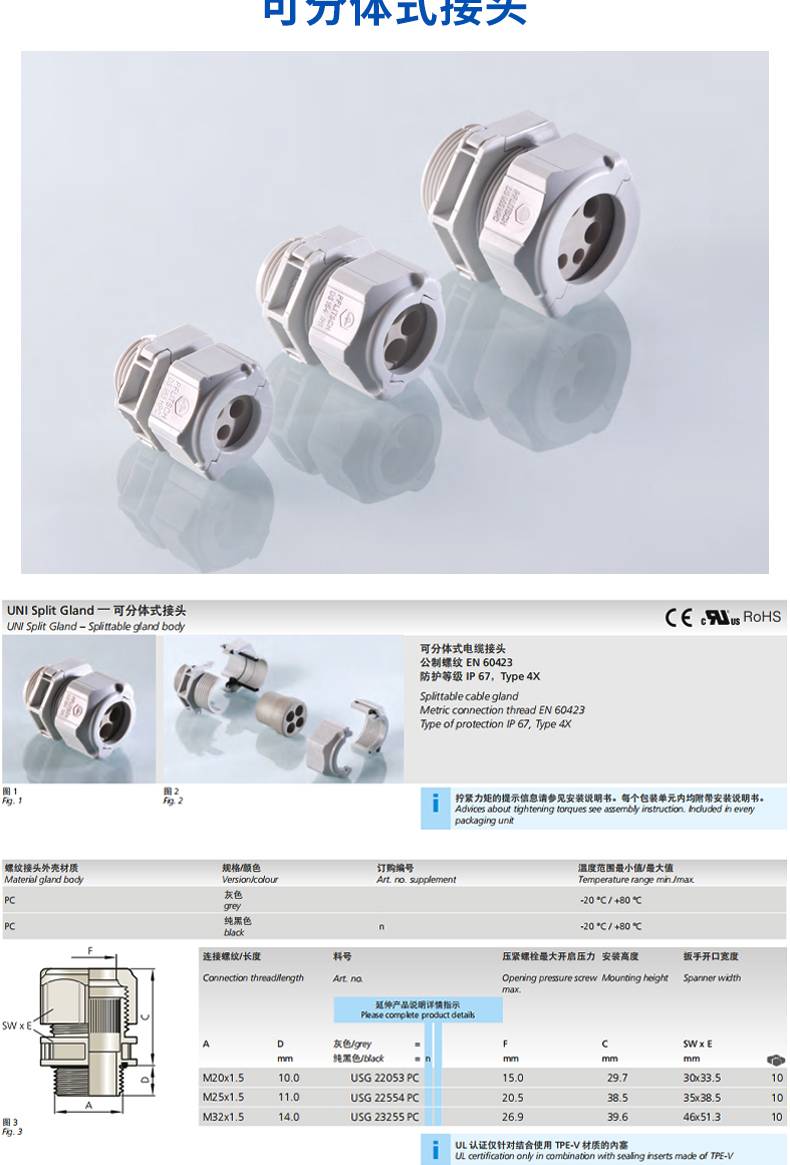 电缆分体连接件 适用于电梯控制系统 连接螺纹紧密 易于操作
